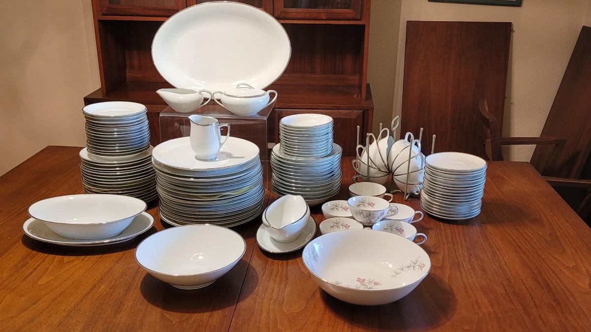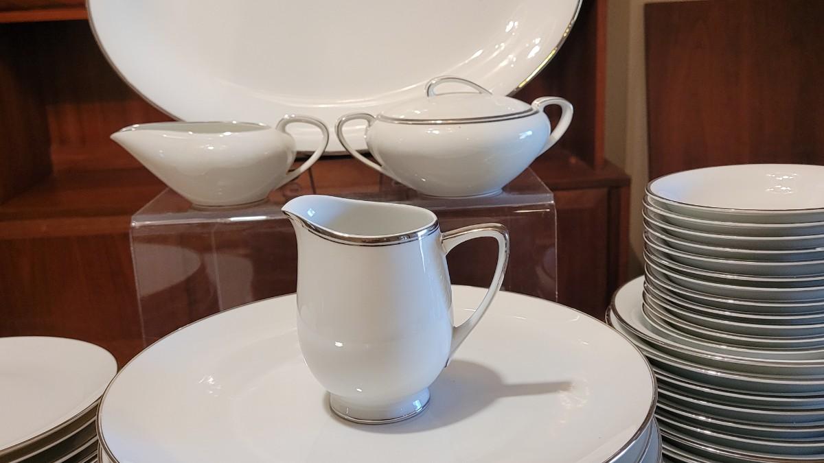 Lot 105: Noritake 'Silverdale' China Set (white with Silver Rim)