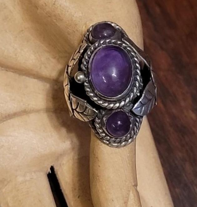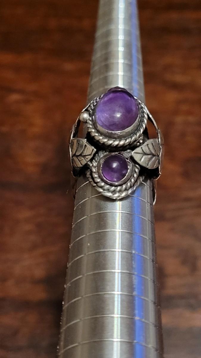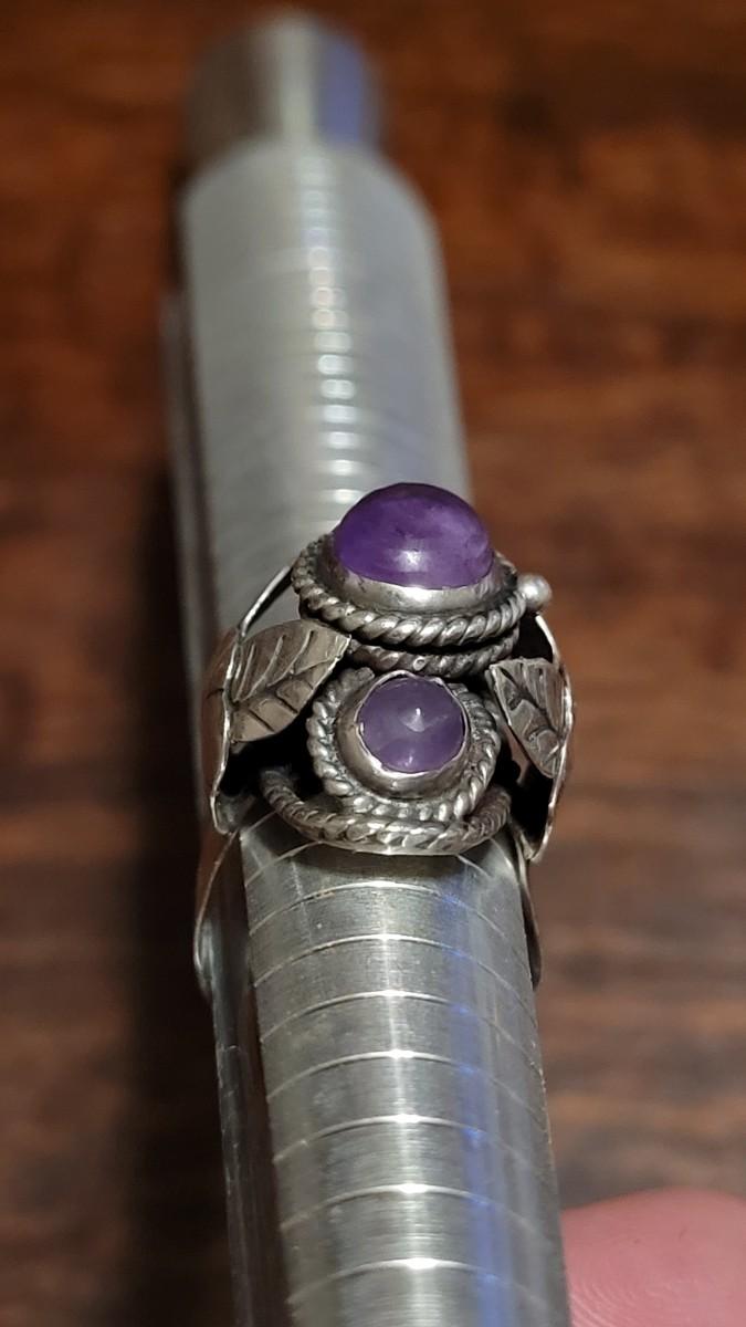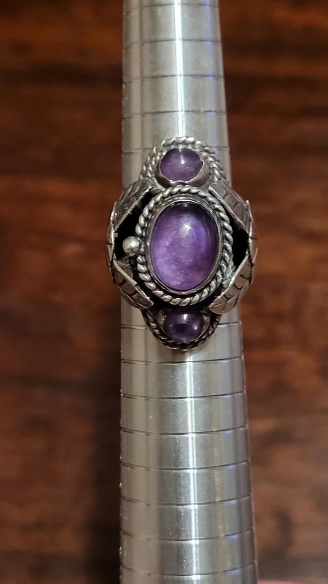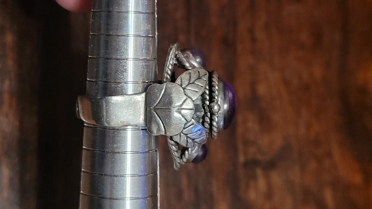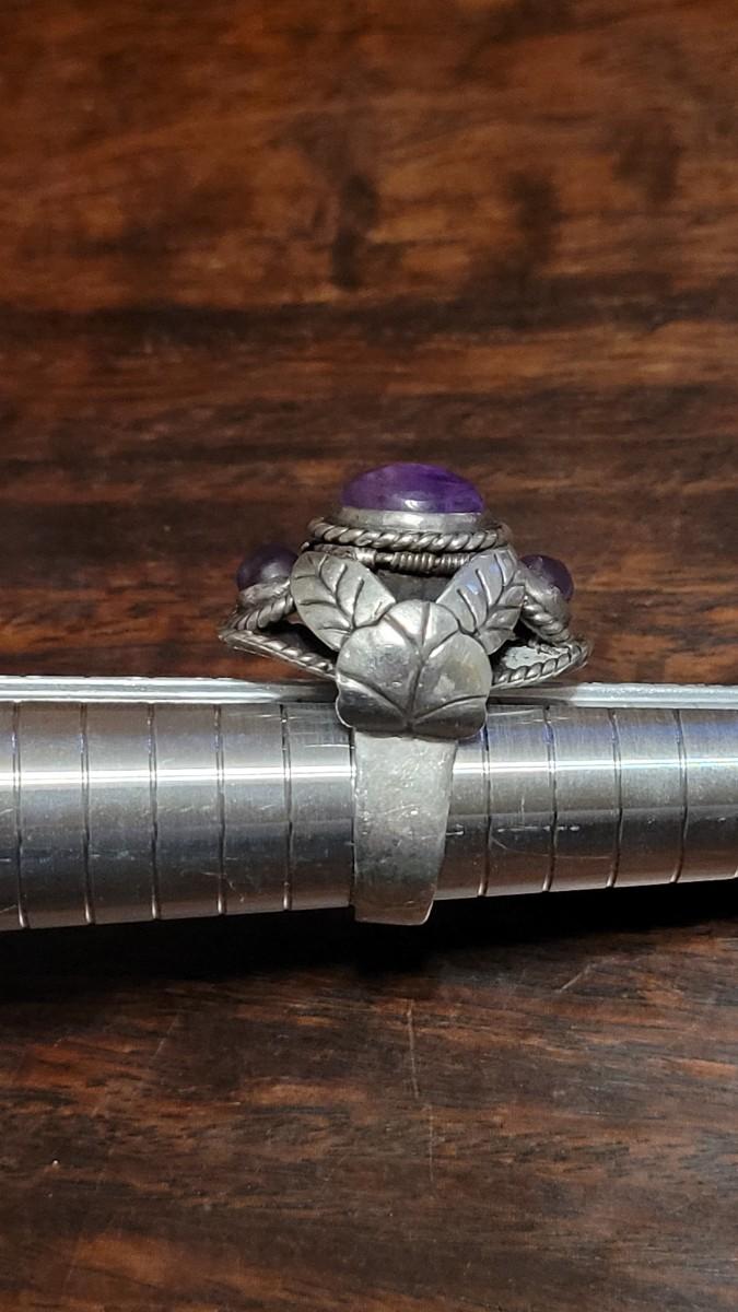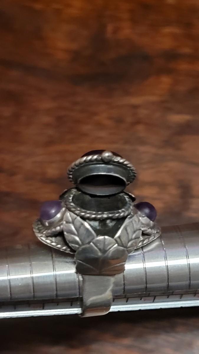 Lot 110: 1940's Mexican Sterling & Amethyst Poison Ring