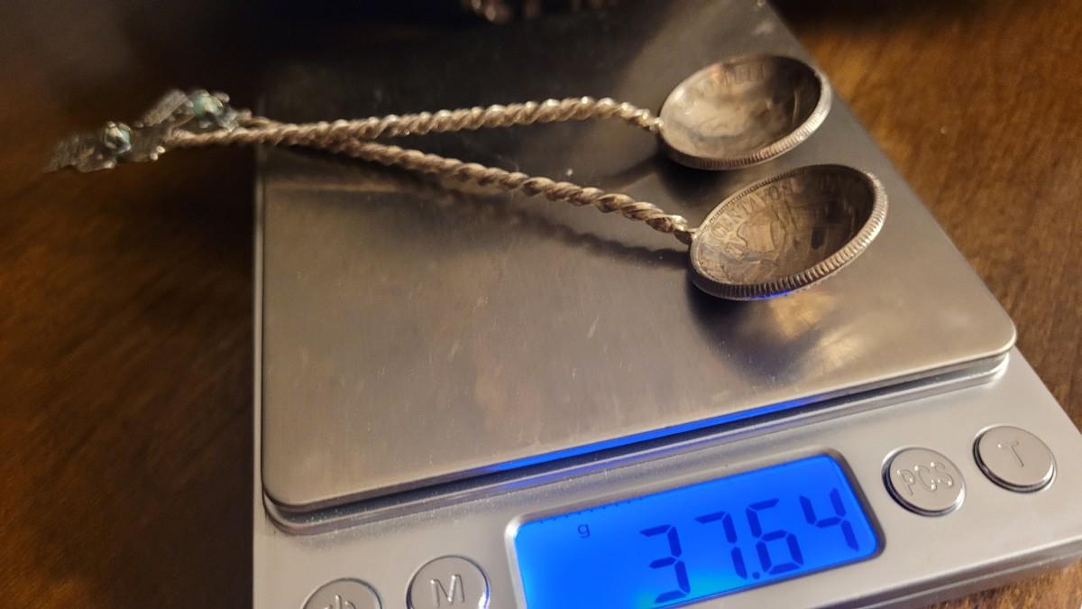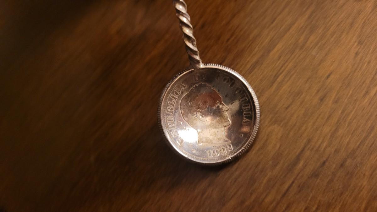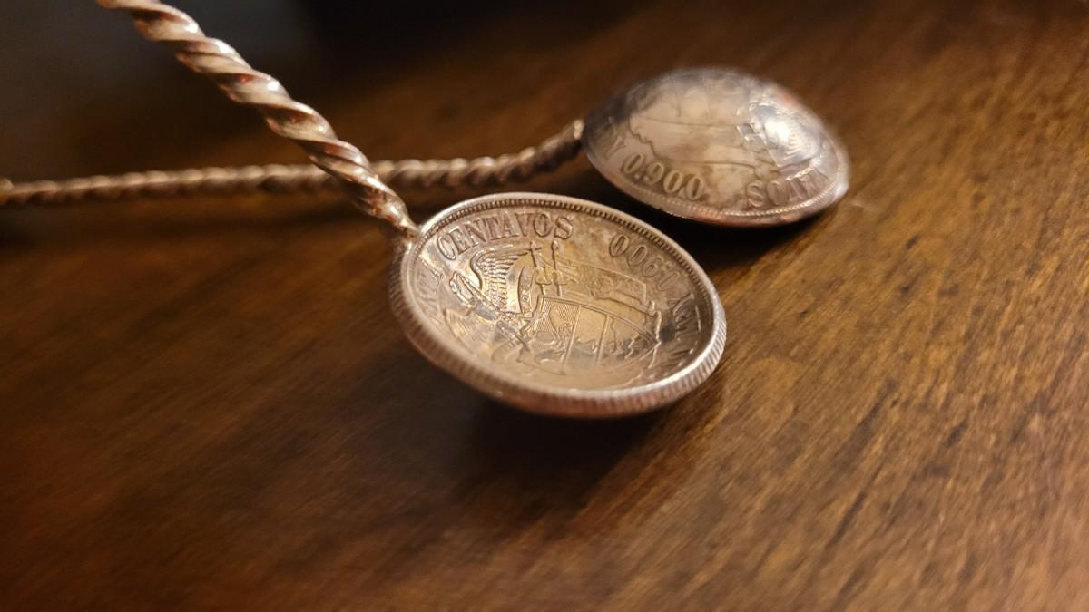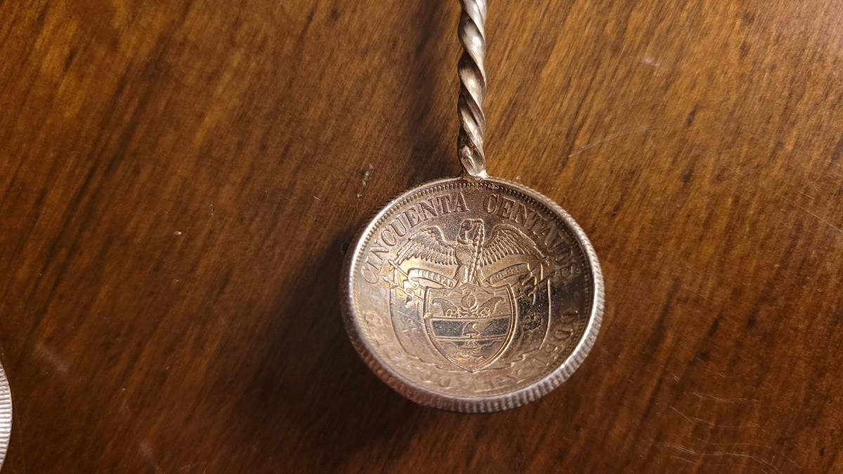 Lot 110: (2) Vintage COLUMBIAN .900 Silver Cincuenta Centavos Coin Spoons