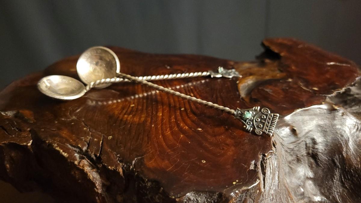 This lot features a pair of Vintage Art Spoon creations using Columbian 50 Cent .900 Silver Coins. 1922 and 1934 years. Together they weigh just over 37 grams.