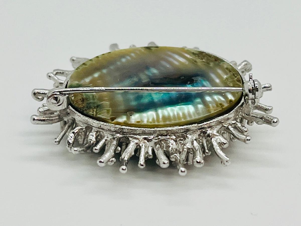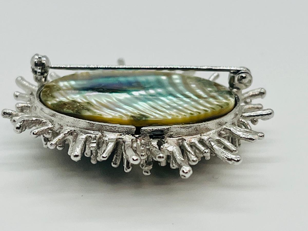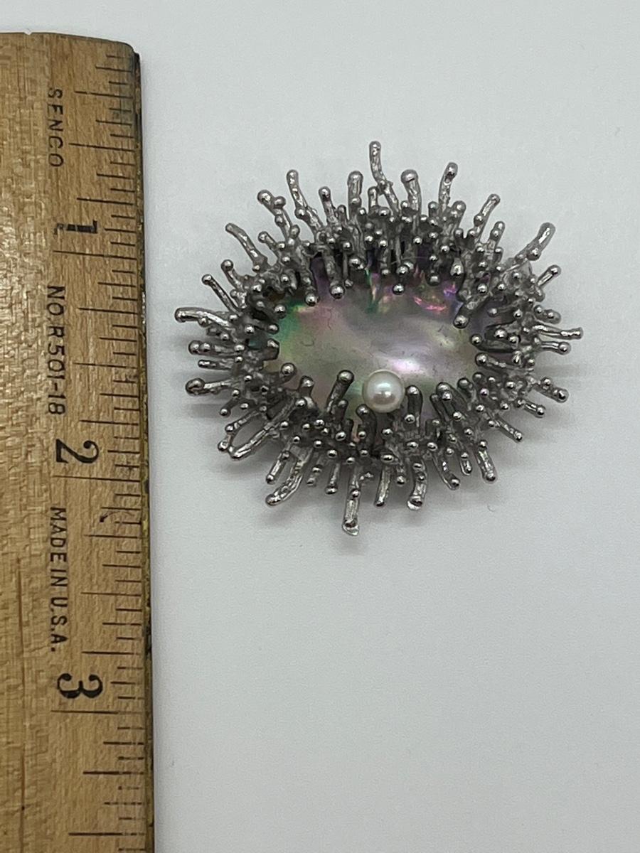 80% Sterling, Abalone, and pearl textured brooch. The pictures show condition, measurements if taken, and what is included in the lot. Due to the large amount that we photograph and the time frame, we are not always able to take measurements. All items unless noted, are pre-owned and have been used, and are untested. Thank you