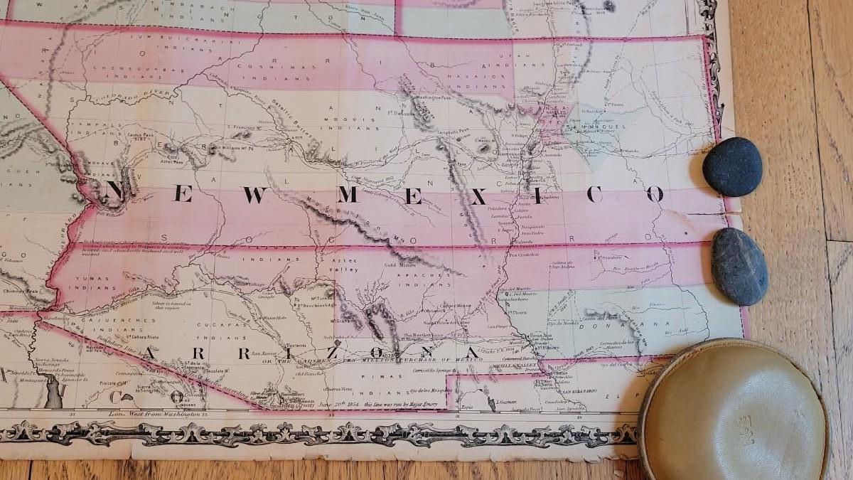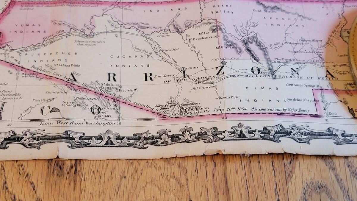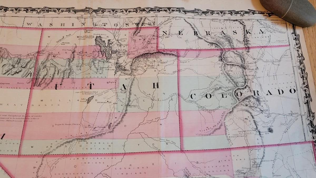 Many counties run from California to the Western Boundary of Texas, across all of New Mexico. Colorado has no counties yet, only those extending across the border from Utah. It includes explorers routes, the major routes of commerce, towns, forts, Indian tribes, mountains, rivers, roads, mining districts, proposed railroad routes, important dates in the evolution of the US-Mexico Boundary, etc.