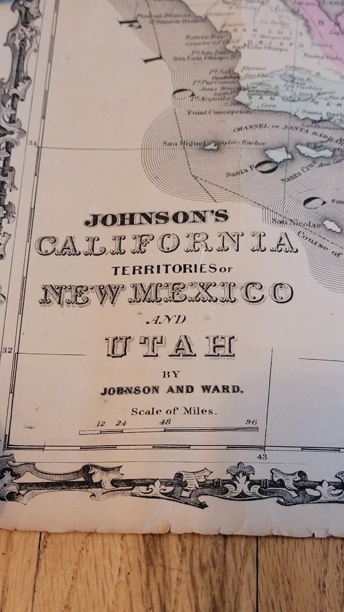 Lot 110: Antique 1863 Johnson's California Territories of New Mexico and Utah By Johnson and Ward