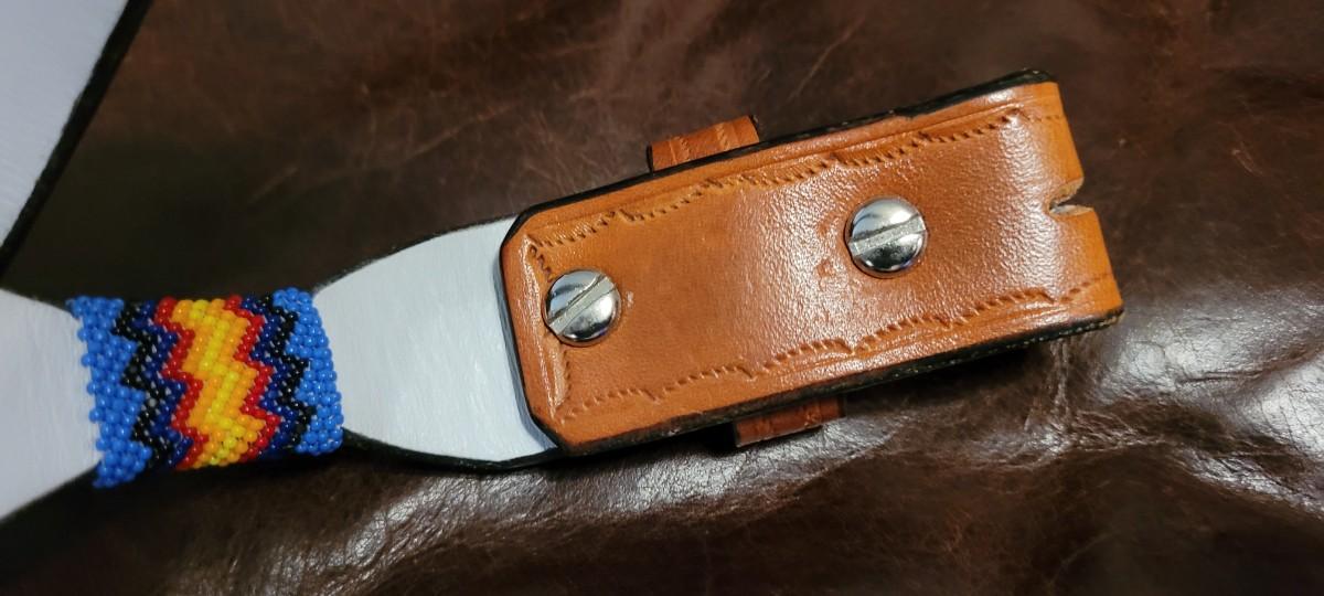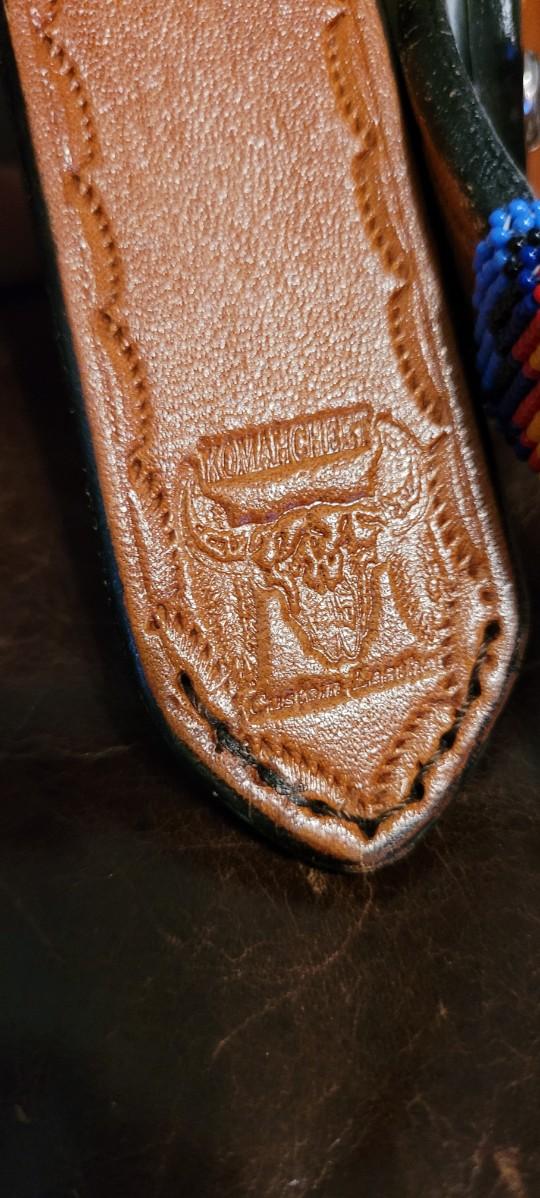 This is a Komahcheet Custom Original. No Buckle included but this handmade fine leather belt will accept almost any standard Buckle with swing hinge. Fine craftsmanship. About 42" from end to end. Unmarked sterling