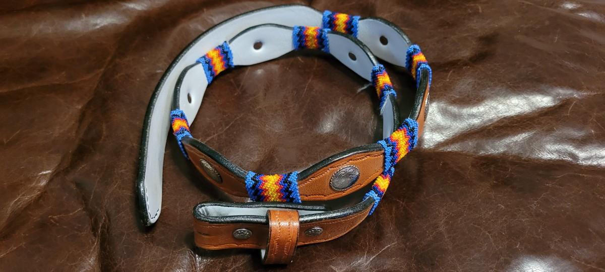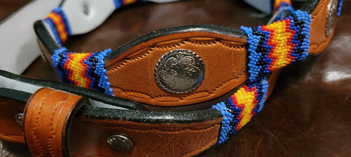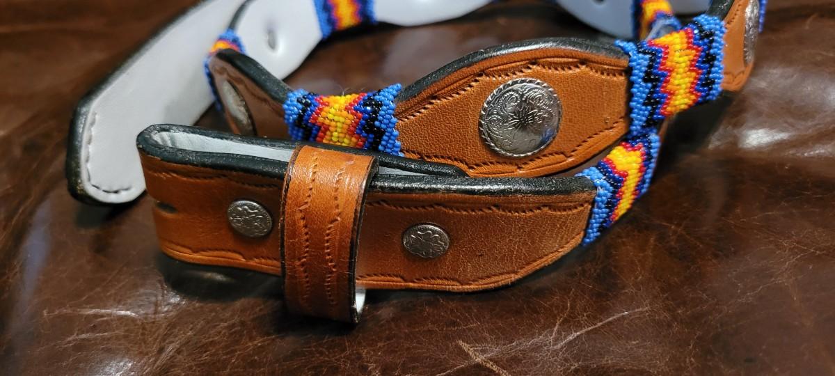 Lot 110: Vintage Concho Leather Belt with Handmade Beading Accents