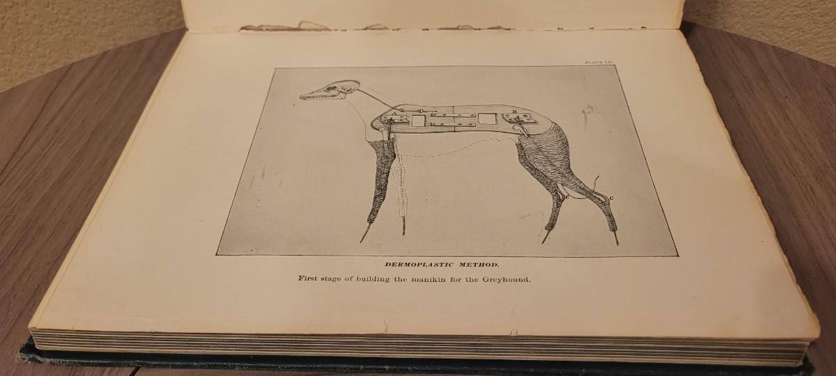 Wonderful antique book covering the topic of Taxidermy full of black and white detailed diagrams about the process for a variety of animals.