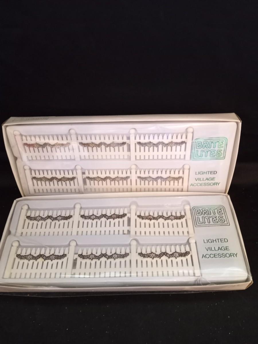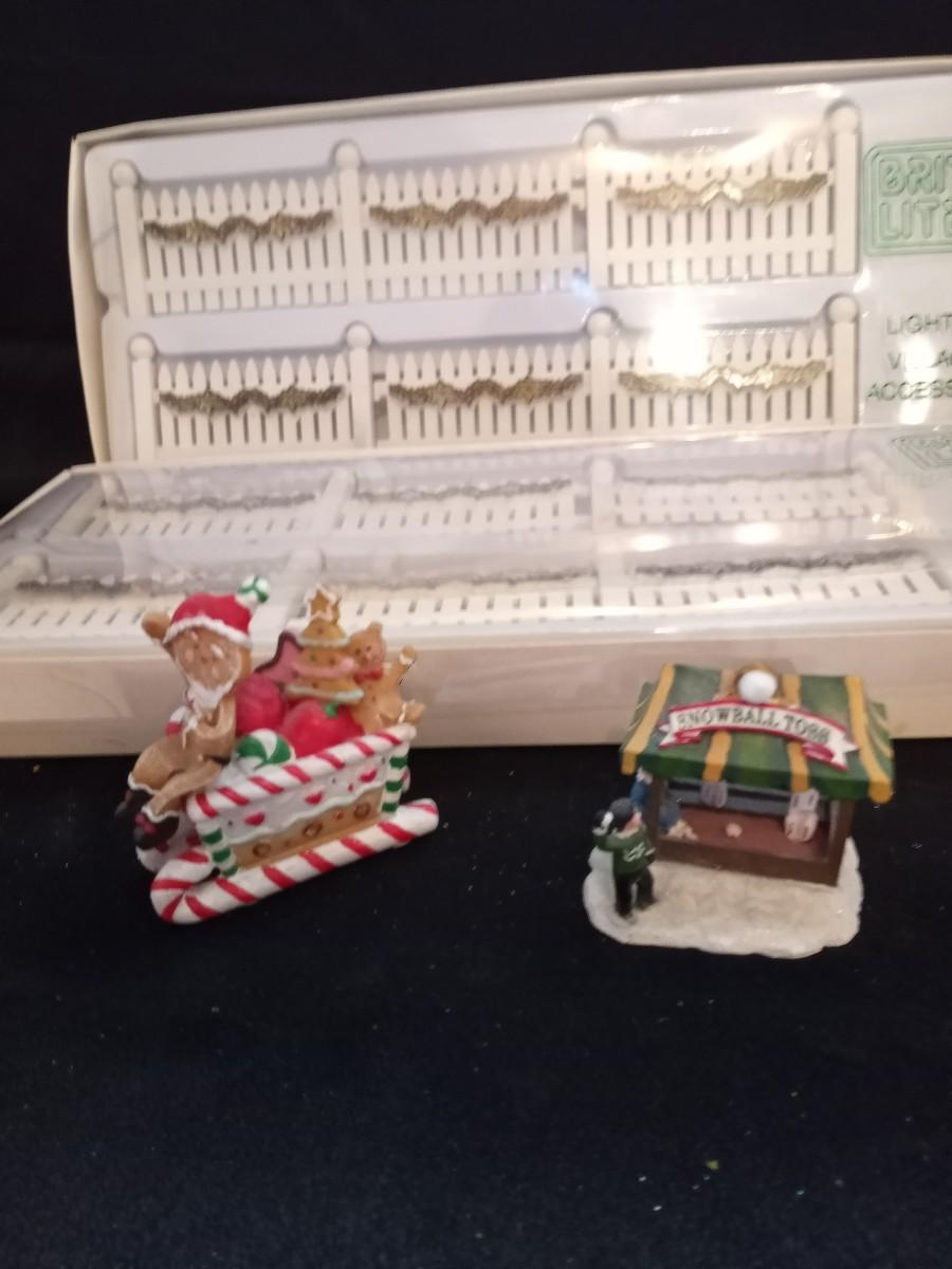 LOT 110 BRITE LITE FENCING -TREE-VILLAHE SLEIGH AND HOUSE