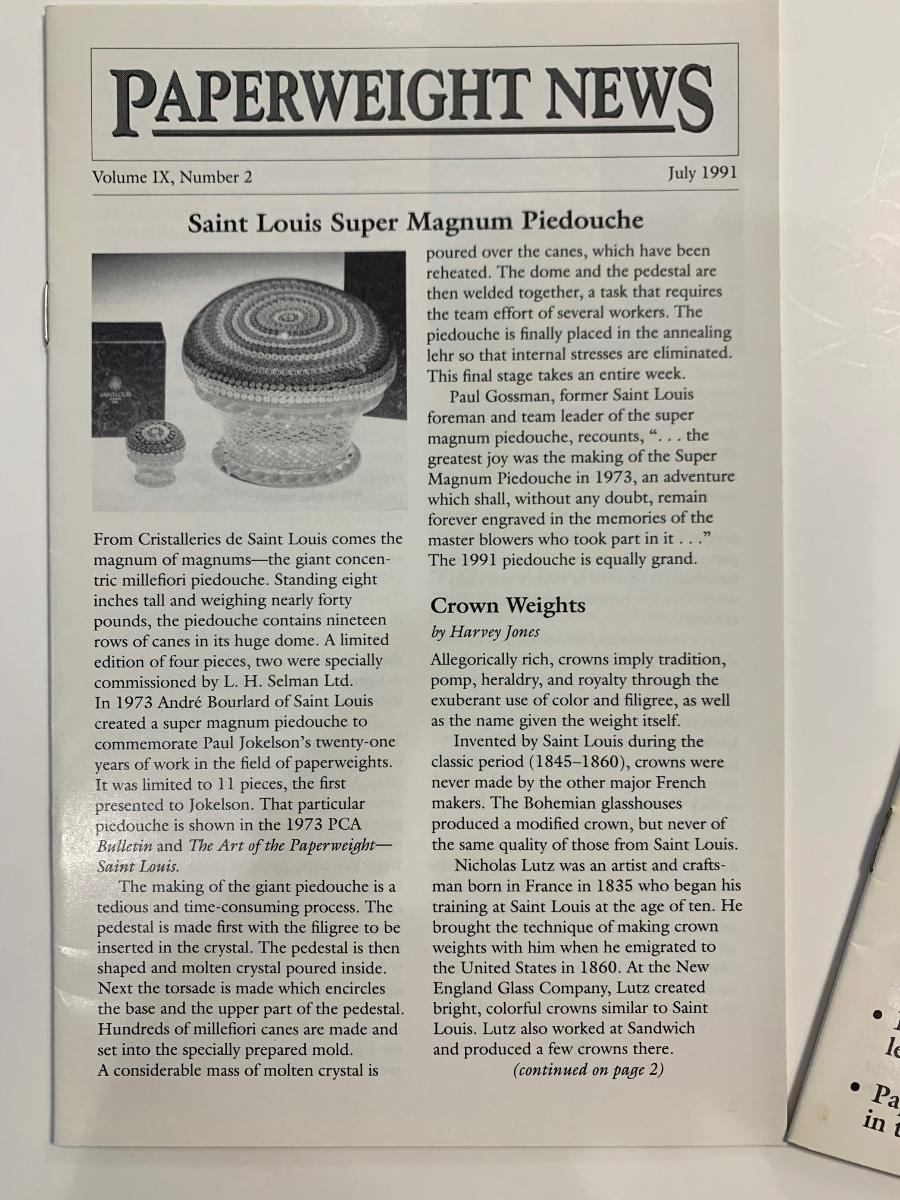 Paperweight News July 1991, January 1992, January 1993, Volume XIV, Number 2(there's 2 of these) and the last issue to be printed Volume XV, No. 1