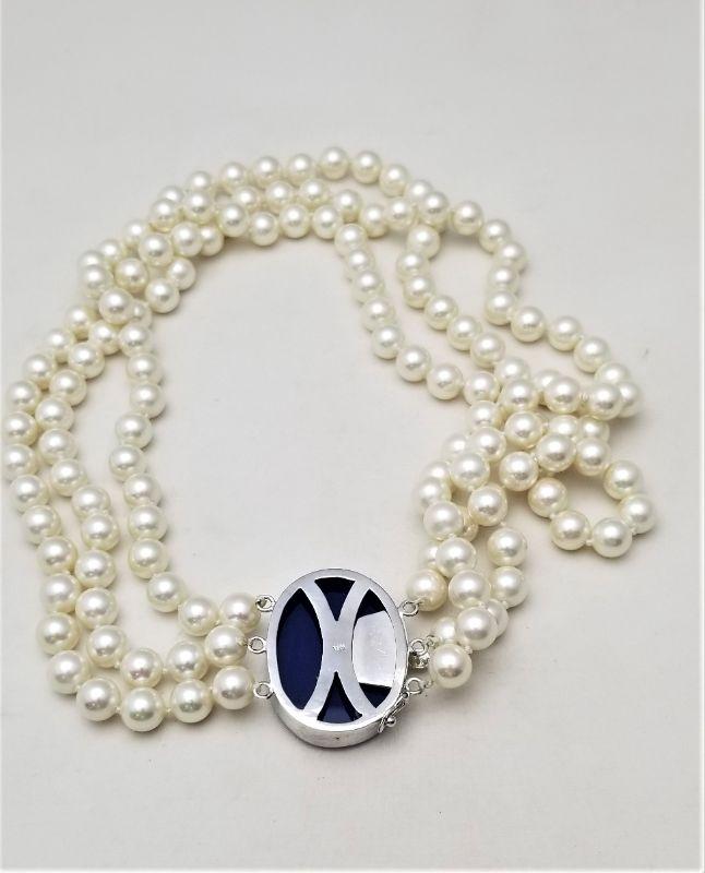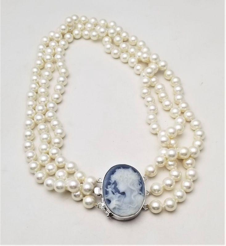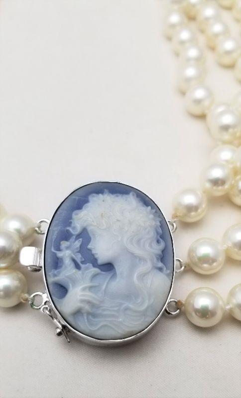 Lot #110 Beautiful 3 strand Cultured Pearl Necklace with Cameo set in Sterling