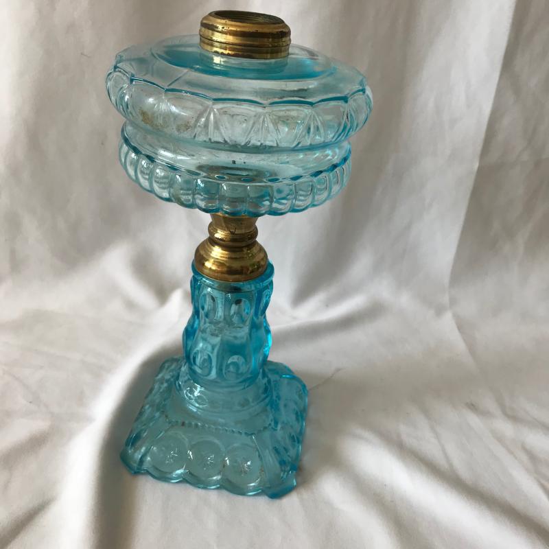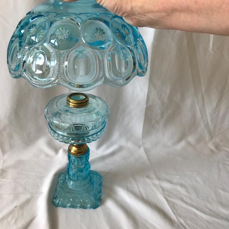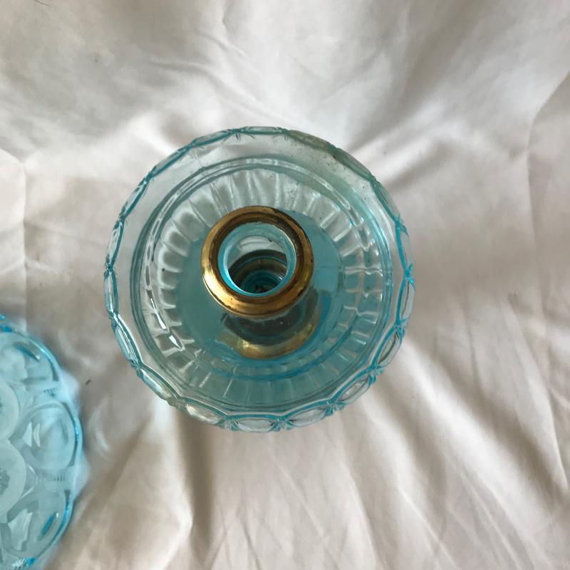 Lot 110 - Blue Glass Oil Lamp and Two Bowls