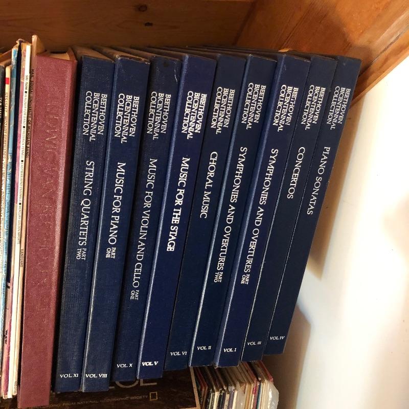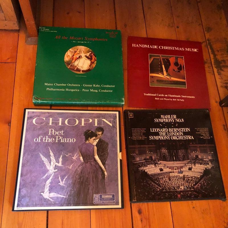 This huge lot of vinyl records contains too many to photograph; images are mostly of the boxed sets and a wonderful hardback book titled Beethoven that is a bicentennial edition and some photos of the individual albums to give you a small taste of what this wonderful lot contains! There are literally hundreds of records here that are predominantly classical music with the odd Christmas special hits from the 60’s etcetera. Also includes a carry case that measures 4” x 12.5” x 14”. Shelves are not included.