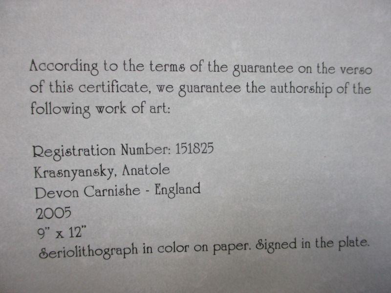 "Devon Carnishe - England" Artist Krasnyansky Seriolithograph Paper