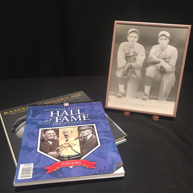 Framed photo of Dizzy Dean and Daffy Dean measures 8.5” x 10.5”. Lot also includes a 2013 Yearbook Hall of Fame booklet and Baseball’s Golden Age Hardcover Book. Shipping available.