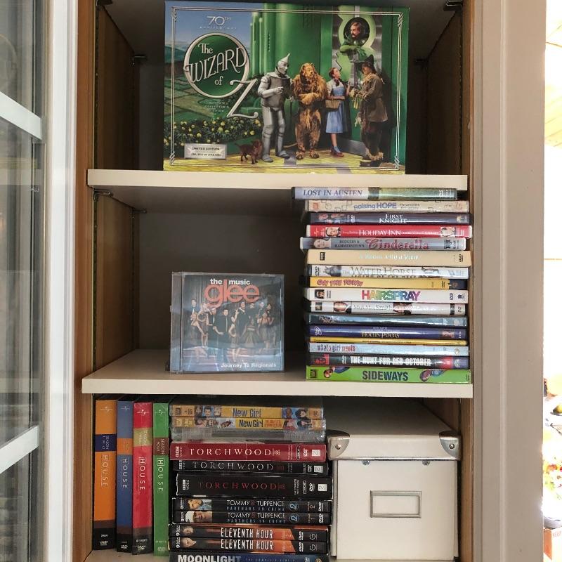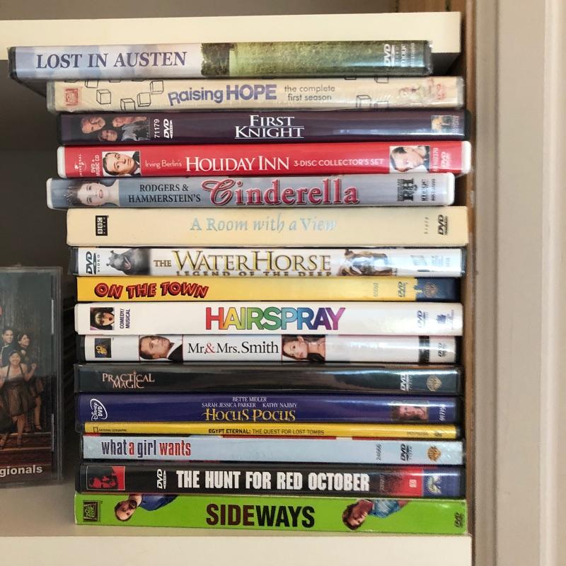 There is a large selection of DVD’s in this lot that includes a Wizard of Oz Anniversary gift set that appears to be new, BBC Pride & Prejudice box set and many DVD titles. Also included is a large selection and of CD’s and two vinyl records(last two pic). See images for titles.