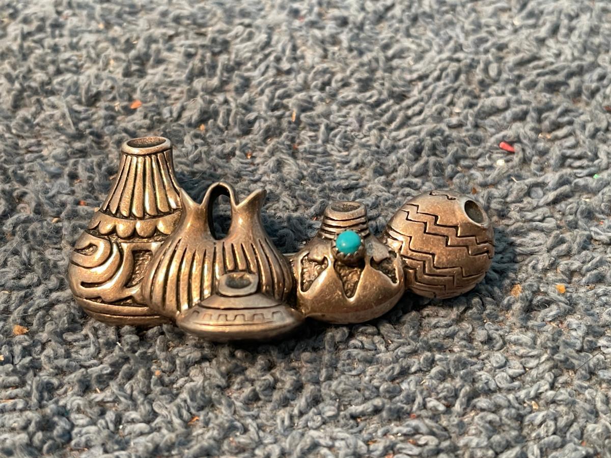 LOT 110 STERLING TURQUOISE NATIVE AMERICAN POTS PIN