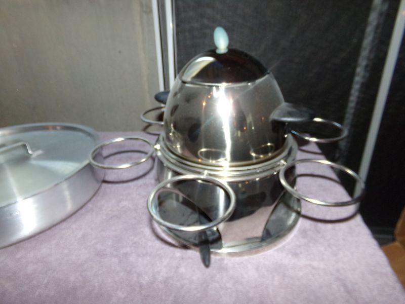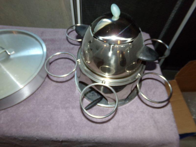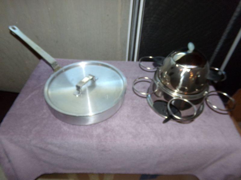 VERY NICE FONDUE POT AND ALUMINUM SKILLET