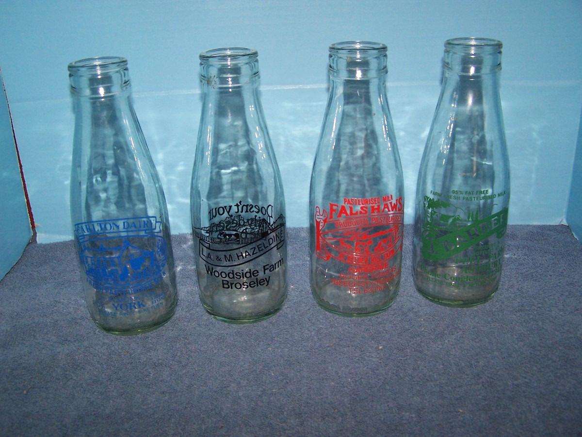 THESE ARE GREAT COLLECTABLE MILK/DAIRY BOTTLES!!! PROBABLY ENGLISH... LIGHT WEAR..