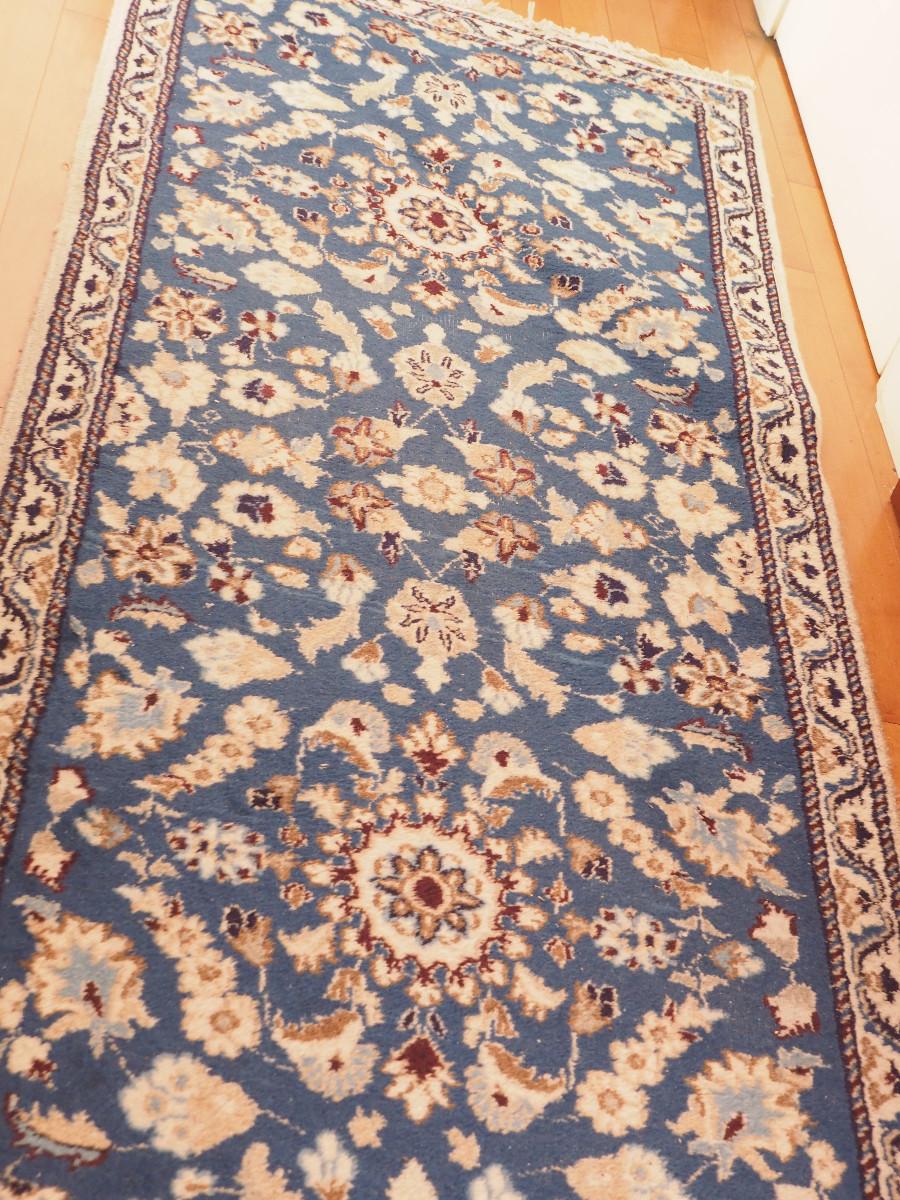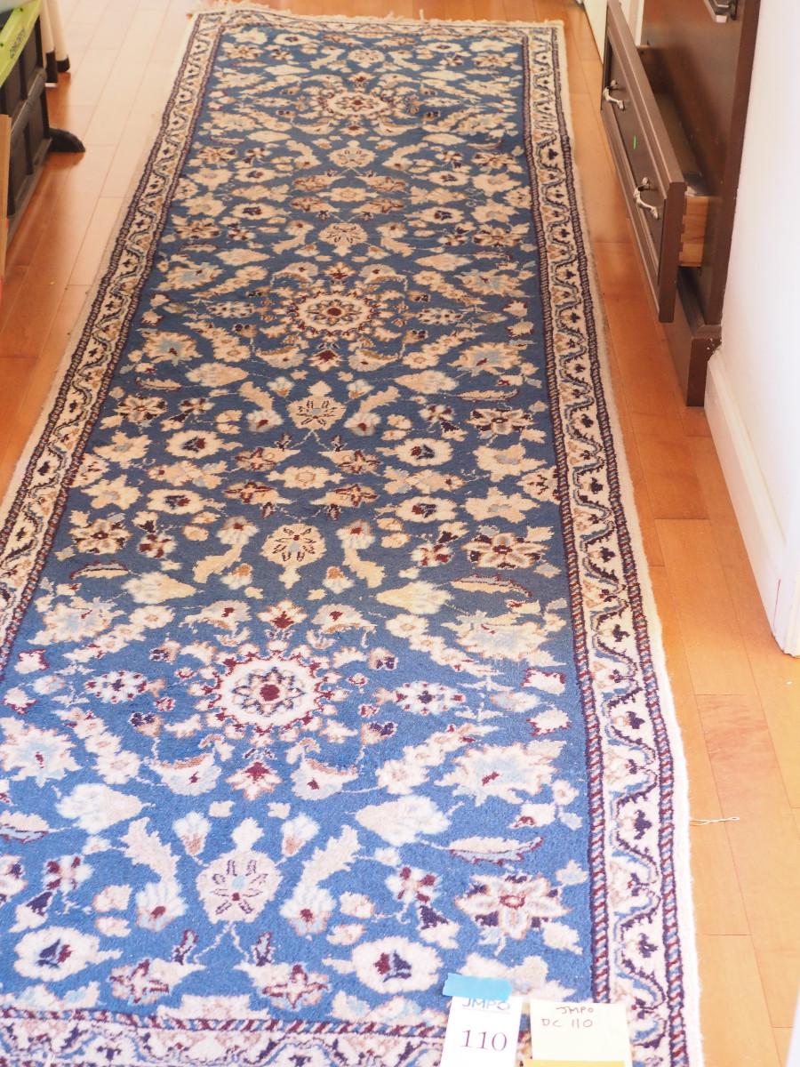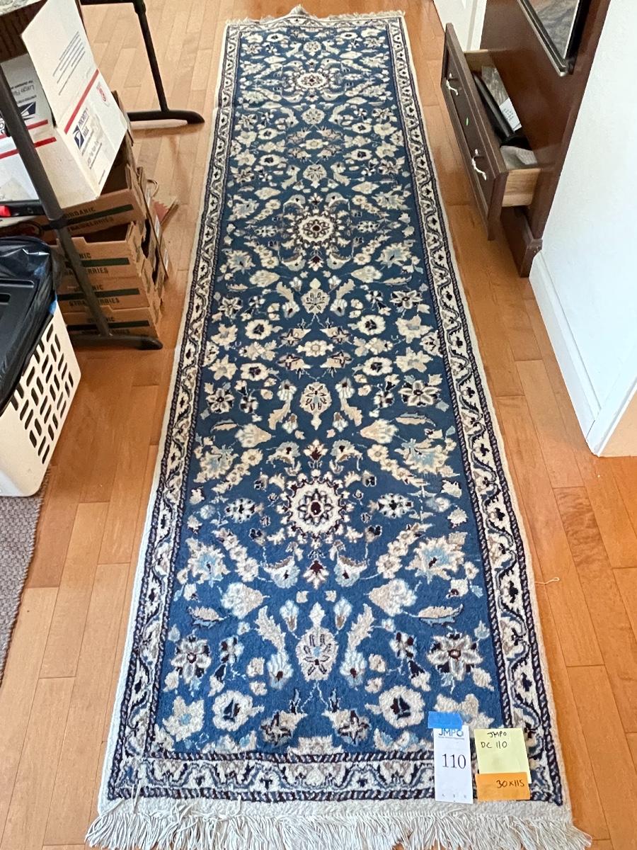 Lot 110 Hall runner 30 X 115 " Blues rust and tan: Beautiful runner with oriental theme in good condition.