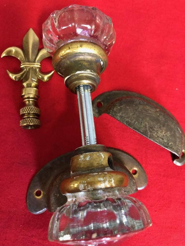 Lot 110 HARDWARE: Glass Door knob, Lamp Finale, Drawer pull