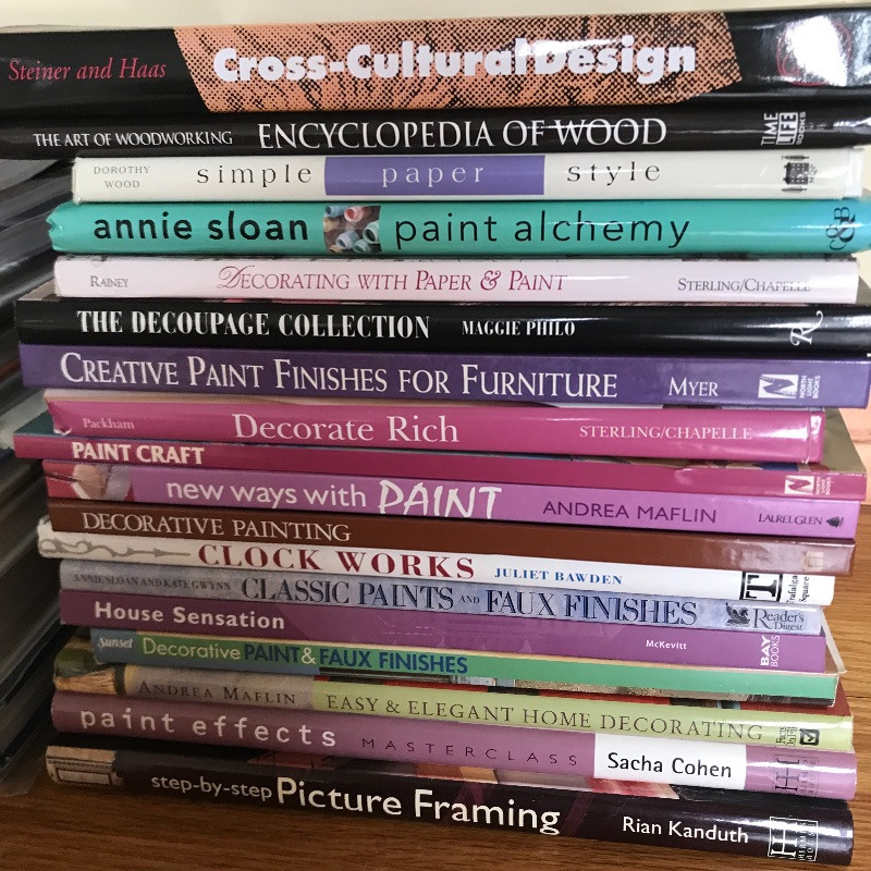 Lot includes 34 beautiful and useful craft and home design books for the creative homemaker in your life. You’ll find books about painting, framing, photography, furniture making, decoupage, and home design. Local pickup only.