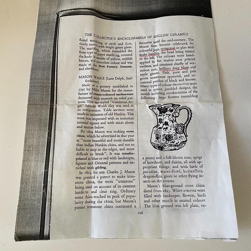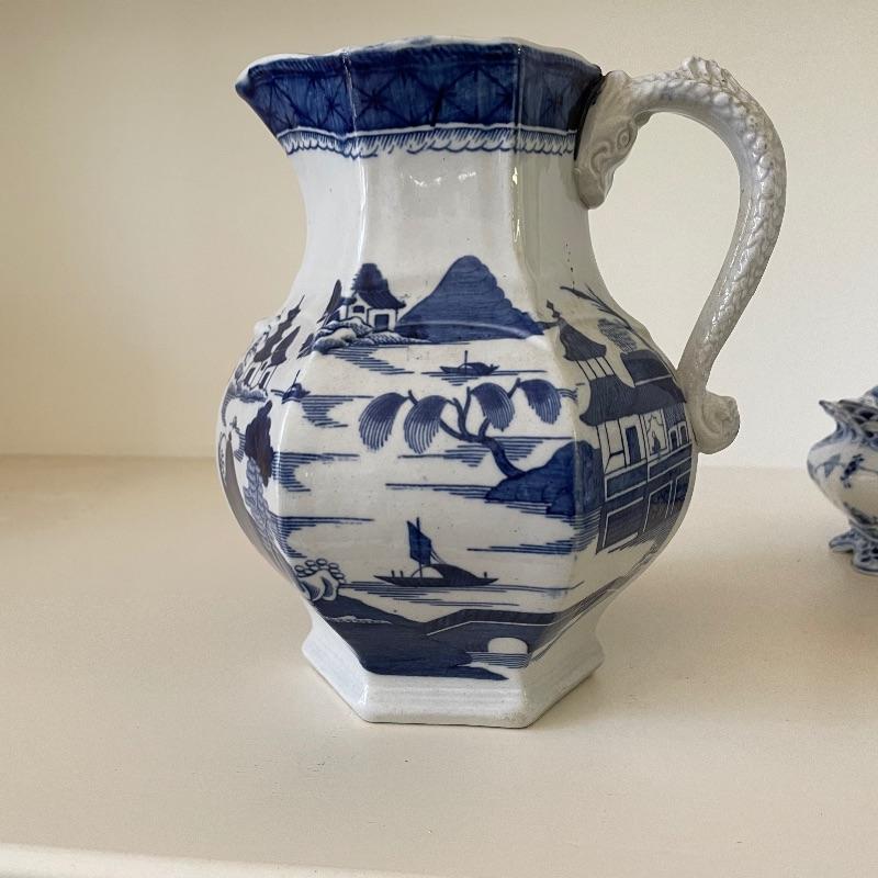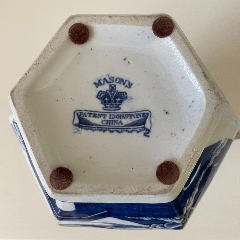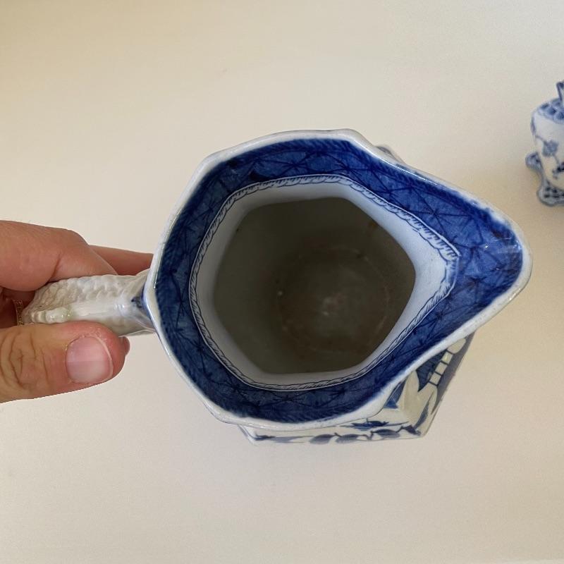 We’ve paired up these items for those who love interesting handles! A 7.5” tall Mason Ware Ironstone pitcher in amazing shape, with beautiful Asian landscapes and a beastly handle. We found a photo copy of some interesting facts about the piece too. Next is a face handled creamer with matching sugar bowl by Royal Copenhagen. These offer a more delicate china feel with beautiful designs. See images. Shipping available.
