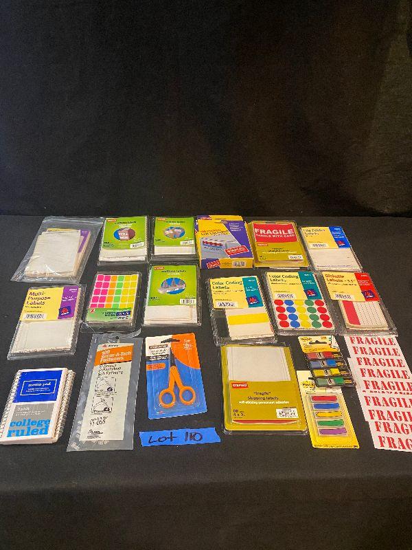 Lot 110 - Fiskars Non-Stick Scissors, Labels and Office Supplies