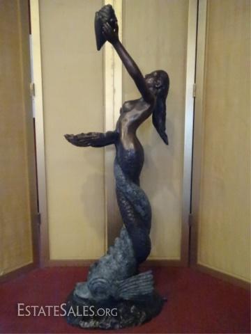 LOT 110: LARGE BRONZE SCULPTURE, MERMAID, ALSO A FOUNTAIN