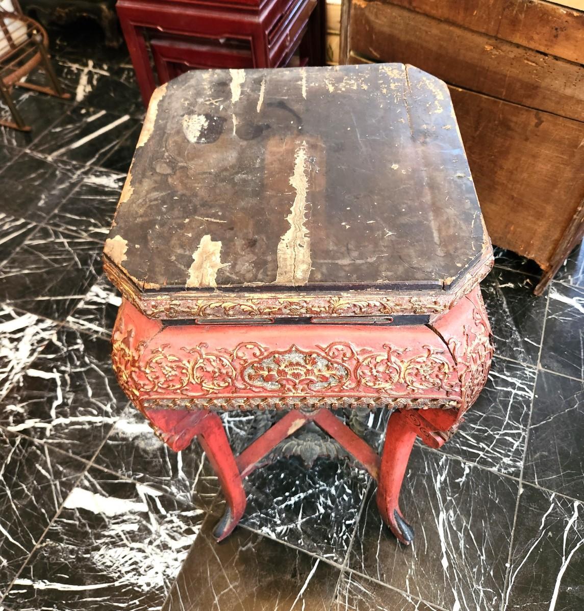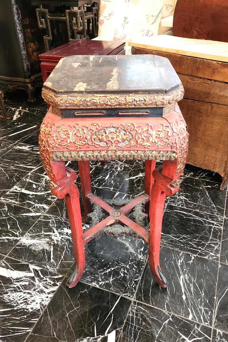 Lot #110 Old Chinese Red Lacquer Side Table/Plant Stand
