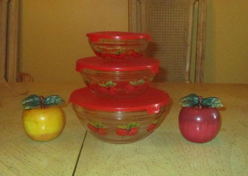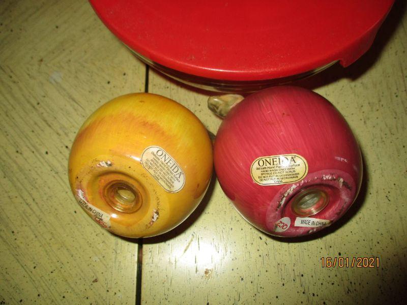 Lot 110 - Oneida Apple Salt & Pepper Shakers 3 Bowls