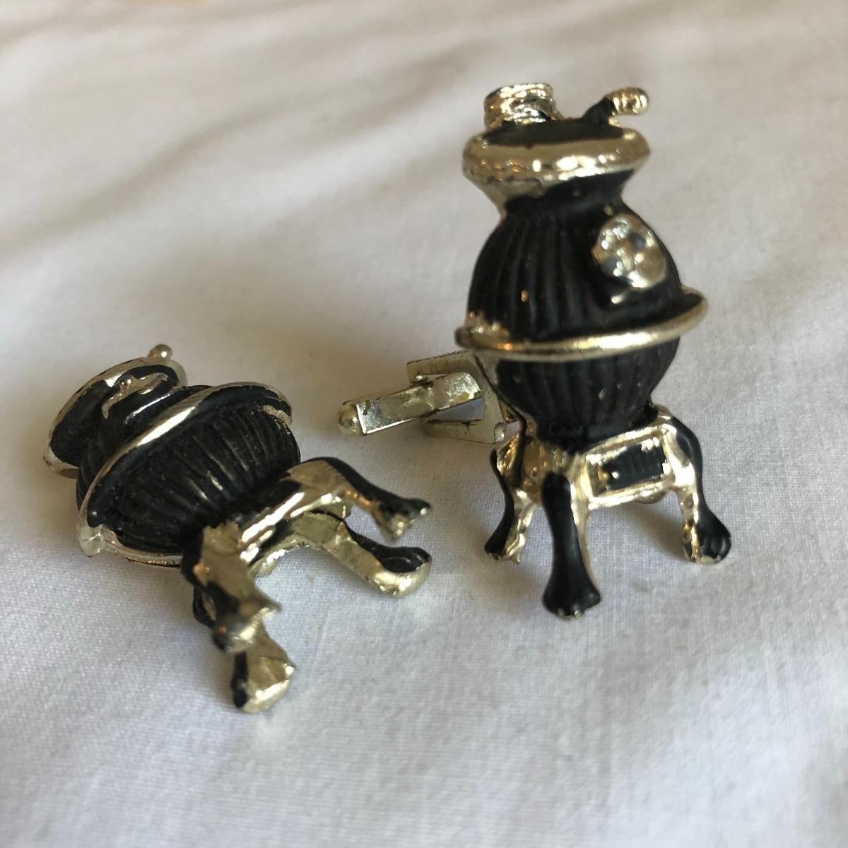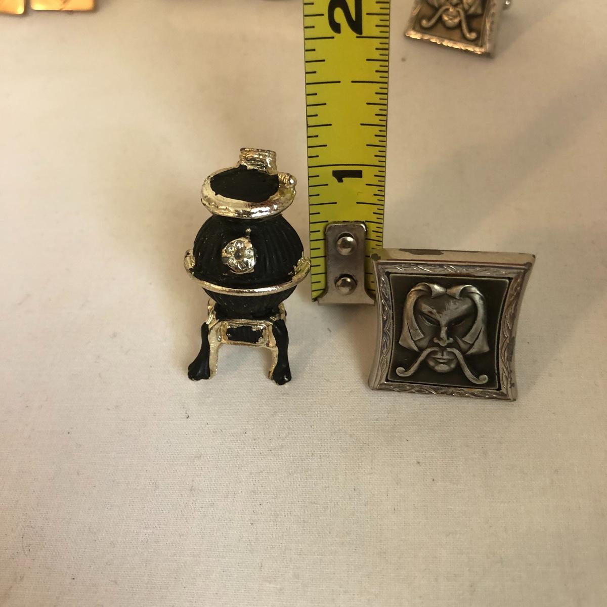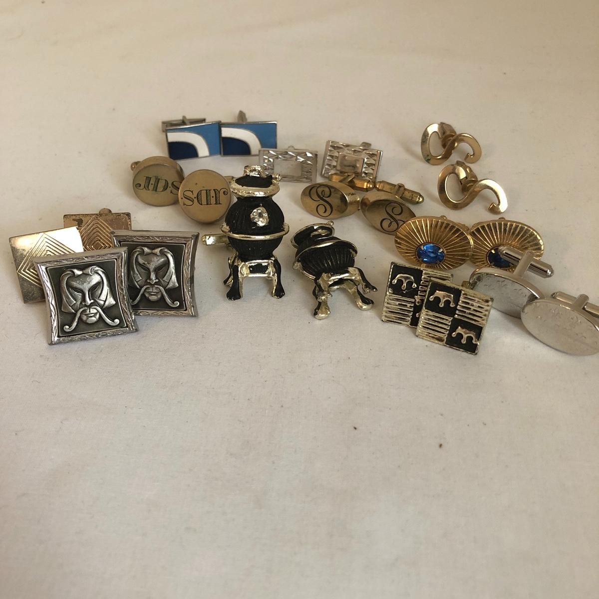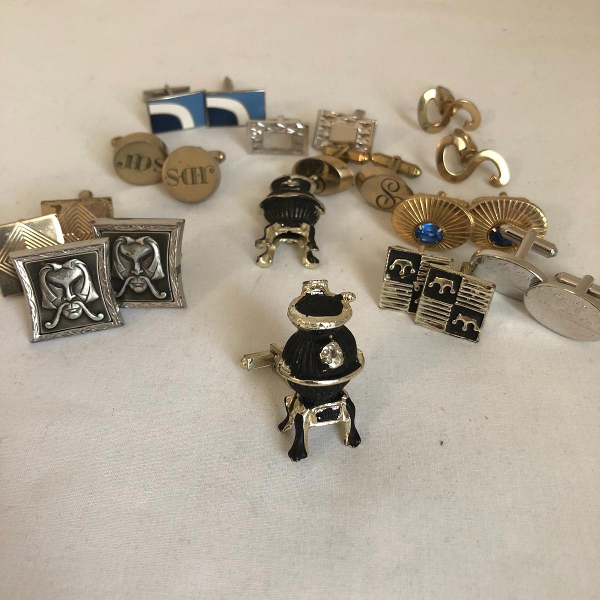 Add some character to your cuffs with this large lot of over ten pairs of cufflinks. There are some really unique sets in this lot. One of the black cauldron cufflinks is missing its back.