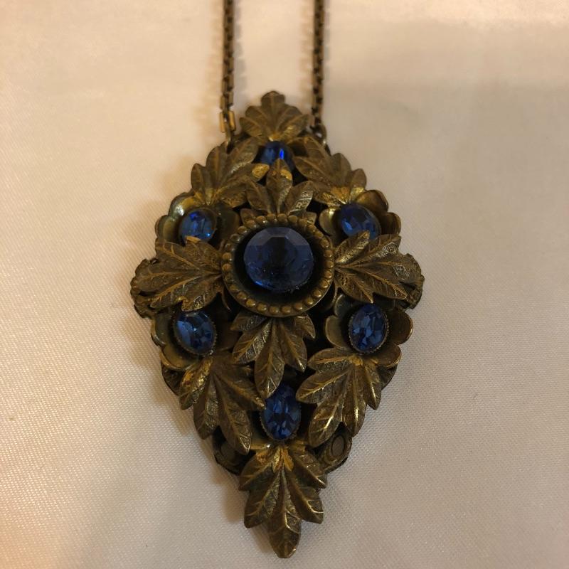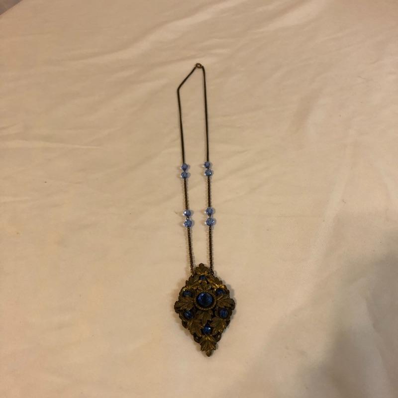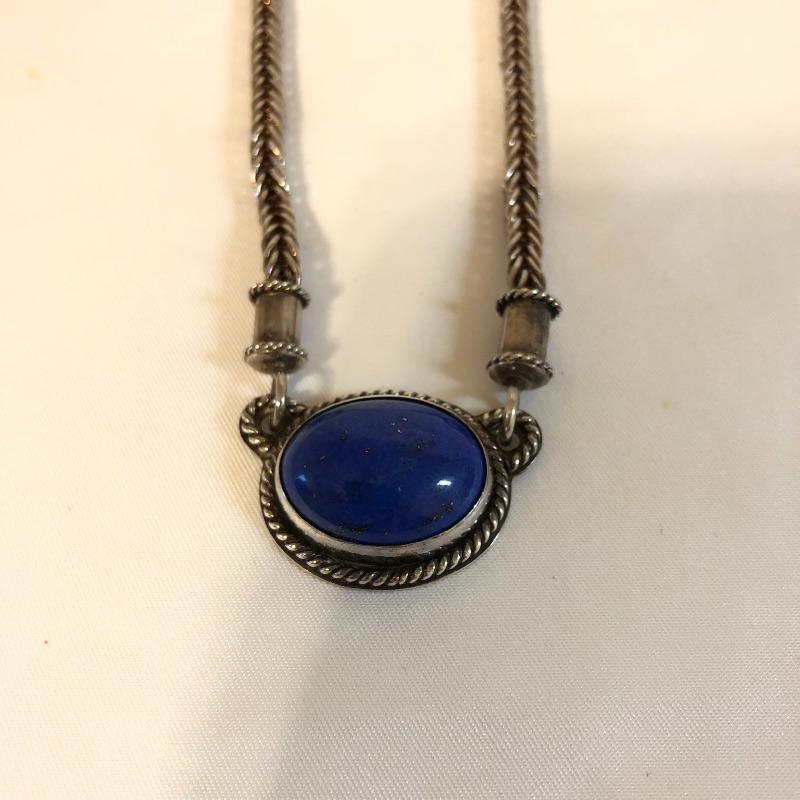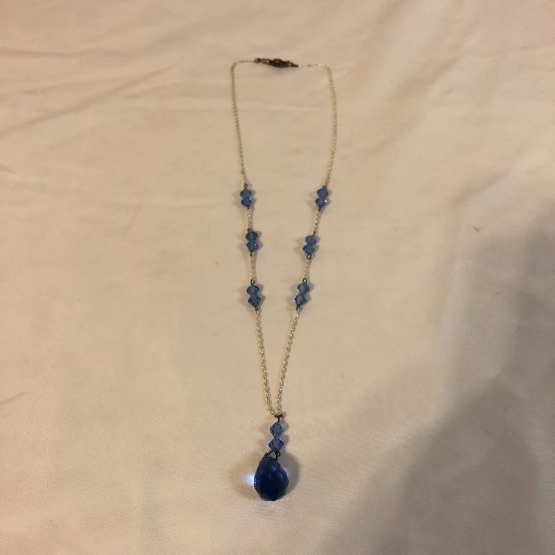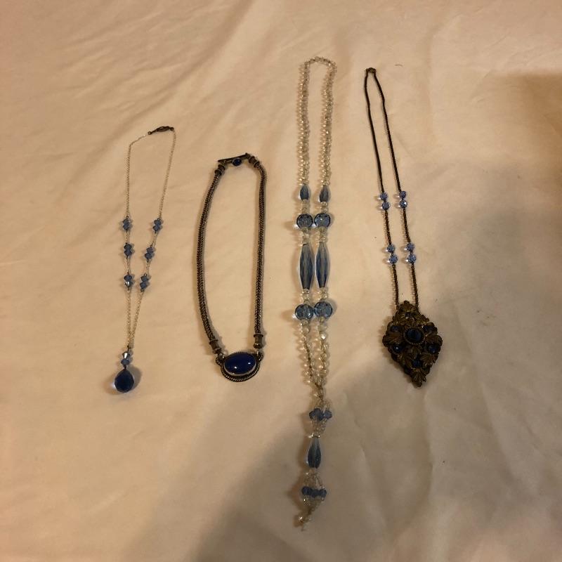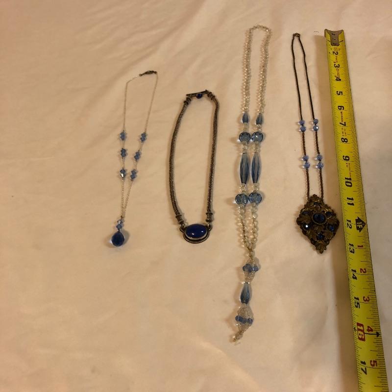 Don’t miss out on these four beautiful necklaces. Lot includes blue stone set in sterling, a gold colored necklace with sapphire colored stones and two necklaces with sapphire colored beads.