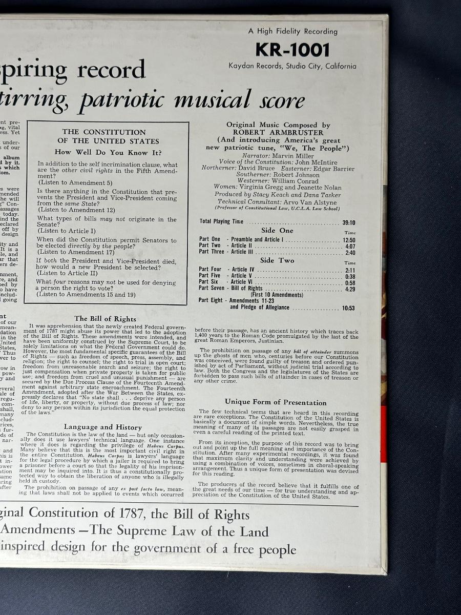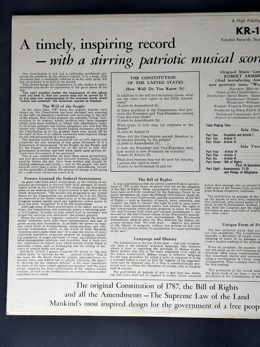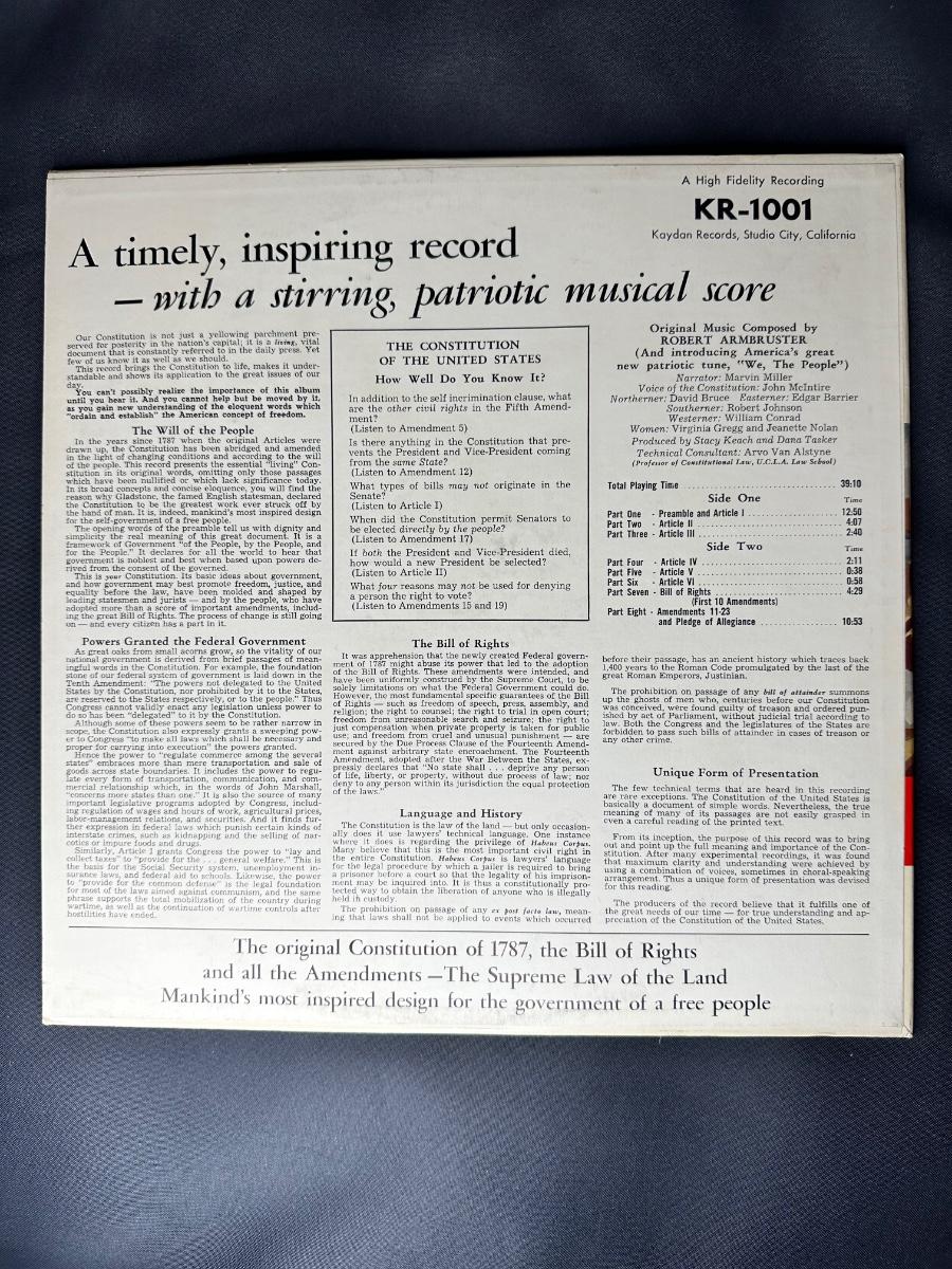 LOT 110: THE LIVING CONSTITUTION OF THE UNITED STATES - KAYDAN RECORDS - 1961 VINYL