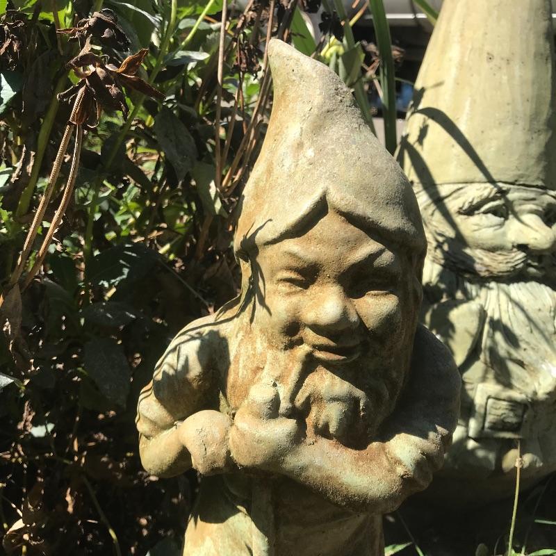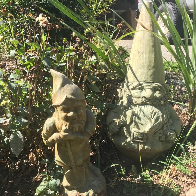 Two lovely finds to keep your garden friendly! Both are made of a heavier material such as cement. The larger gnome is approximately 12” x 22” and will require a strong individual or two to load. He also is missing the tip of his hat, but still has all the character you’ll need! See photos. No shipping.