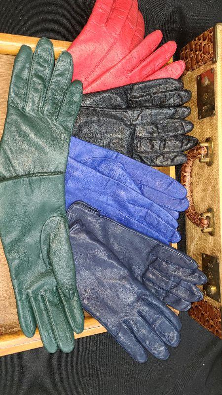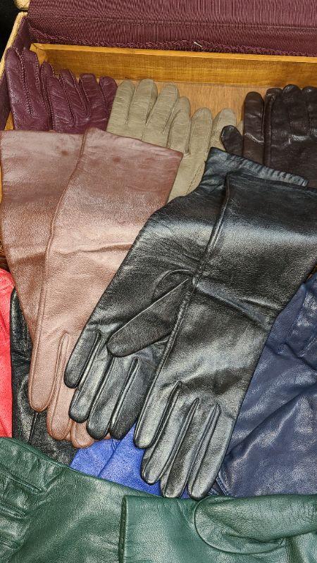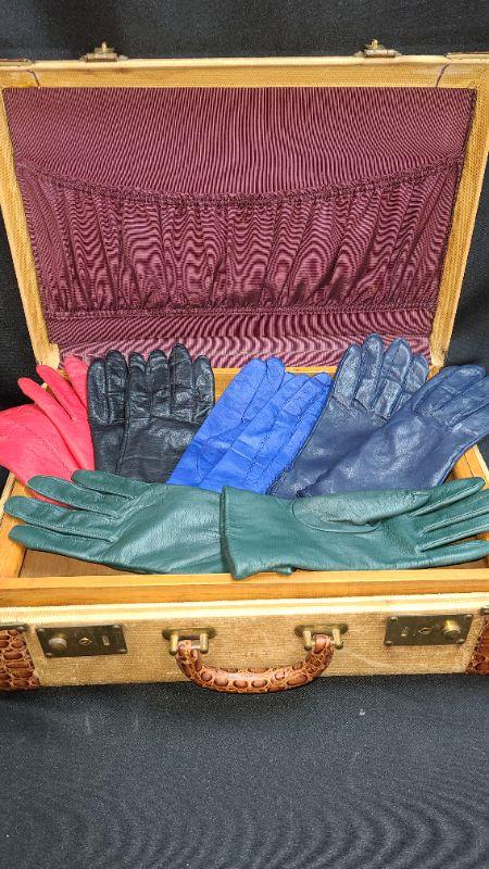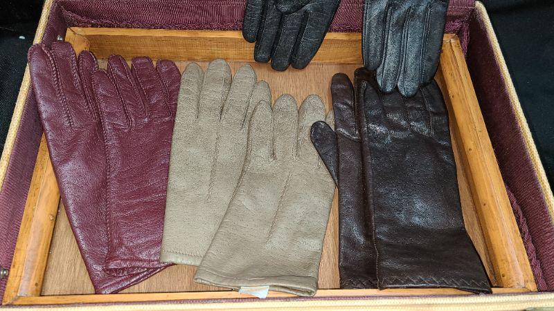 Lot 110: Vintage Trunk Display of Leather Gloves