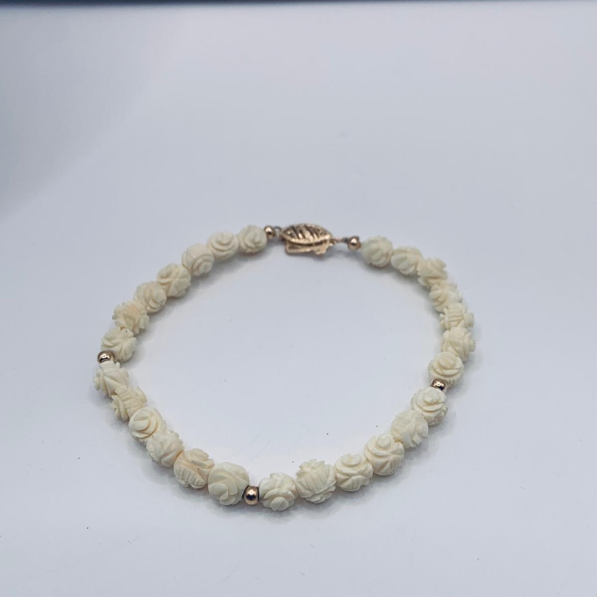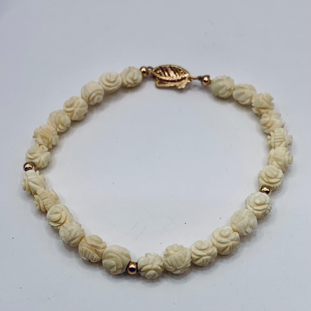 LOT 7: Vintage Rose Bead Bracelet with 14K Clasp
