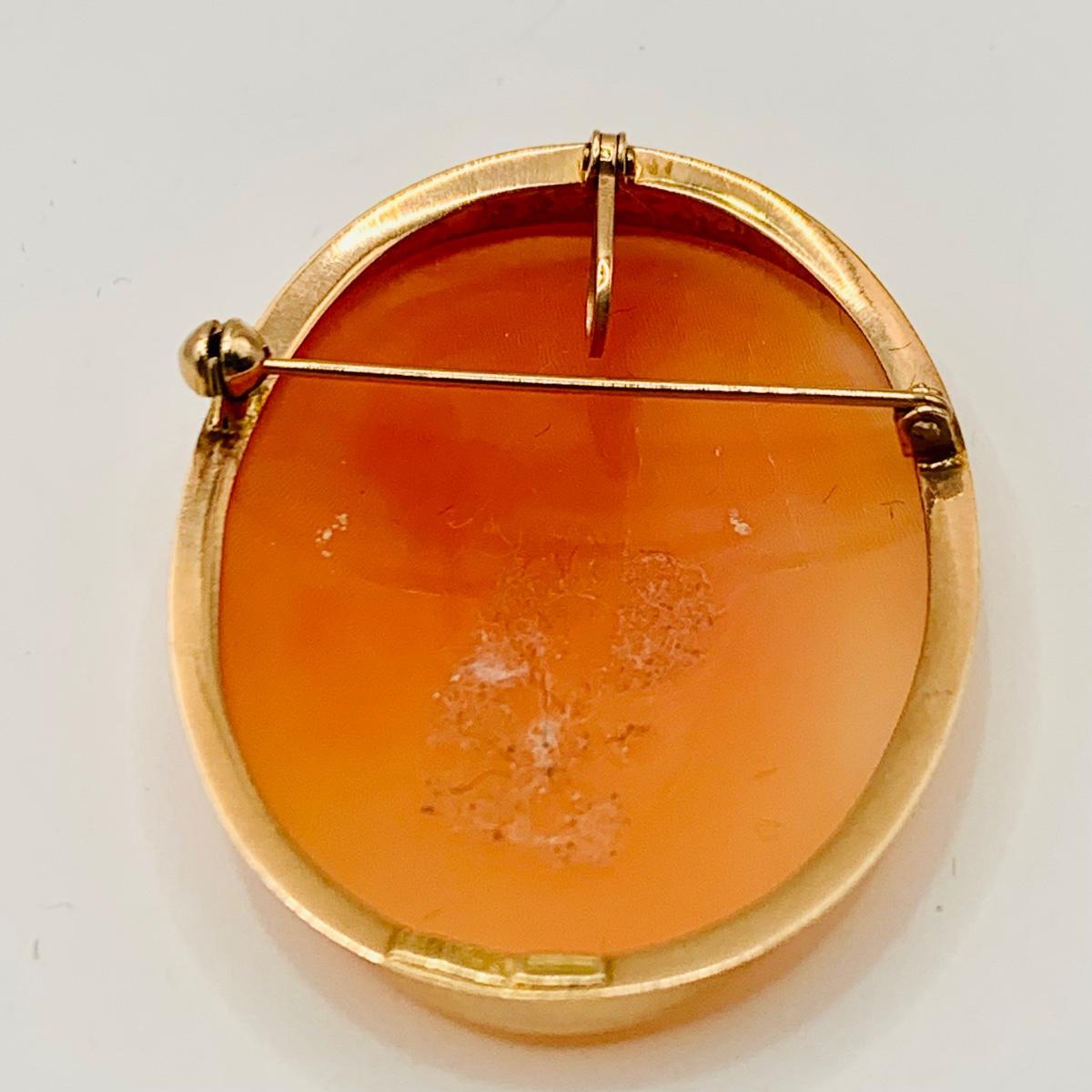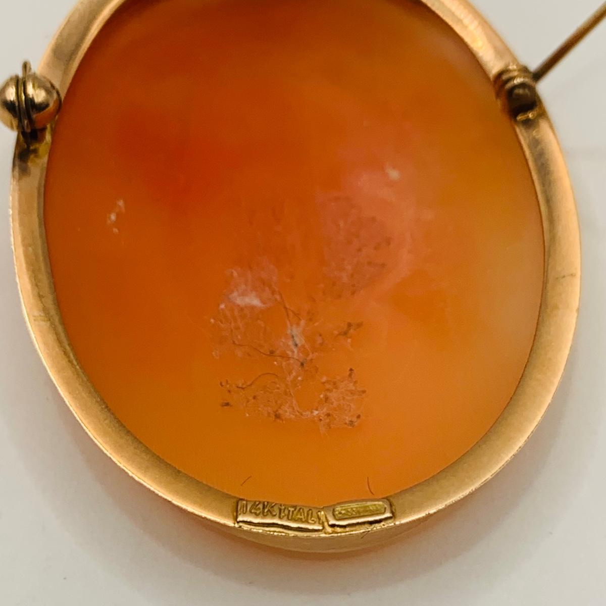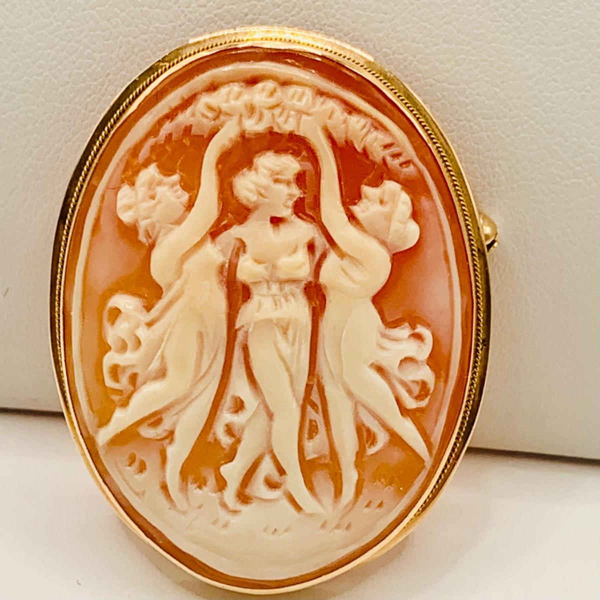 LOT 10: Piece of New Old Stock - "The Three Graces" - Carved Shell Cameo Pendant Brooch Set in 14K Italy Gold