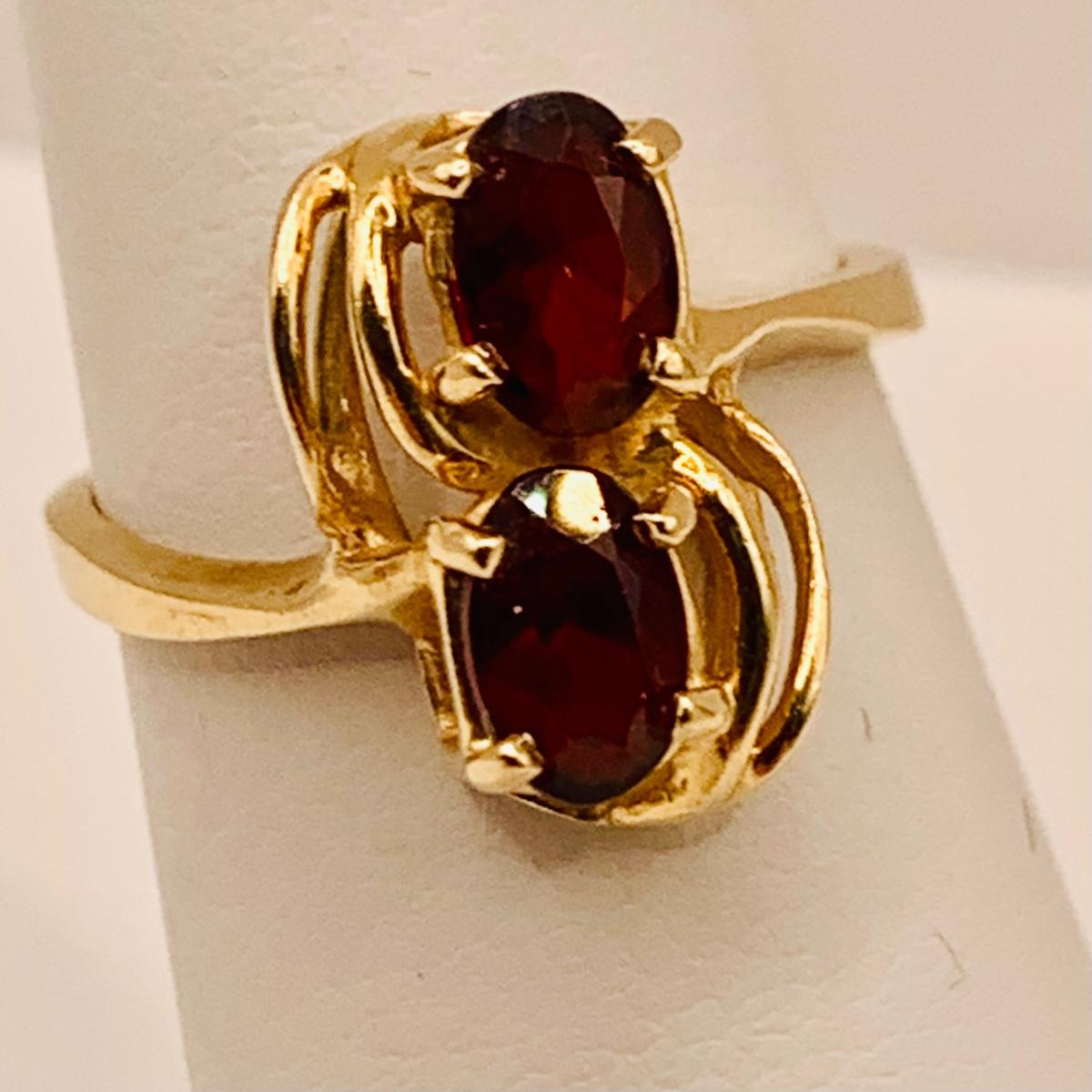 LOT 11: Double Oval Garnet and 14 k Gold Ring - 2.9gtw