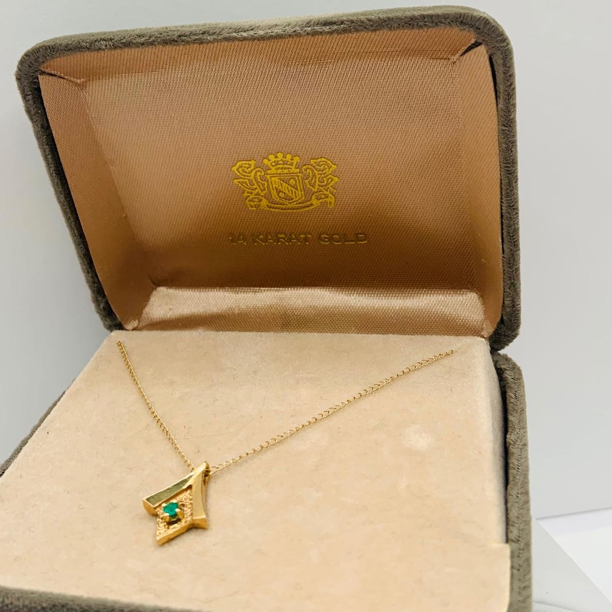 LOT 14: Emerald and 14KP Gold Pendant on 18" Gold Chain