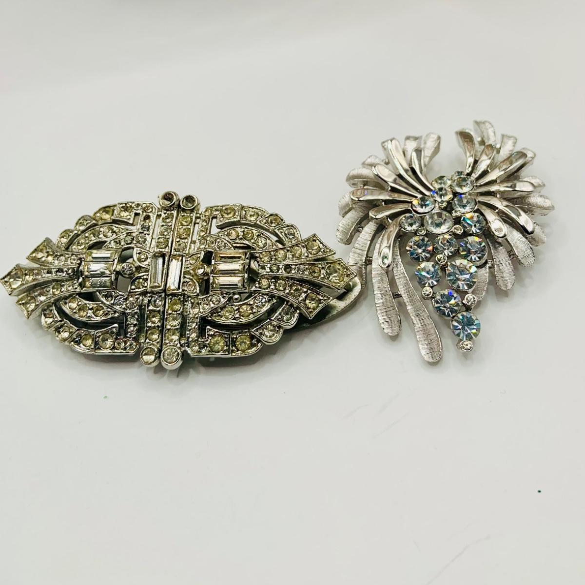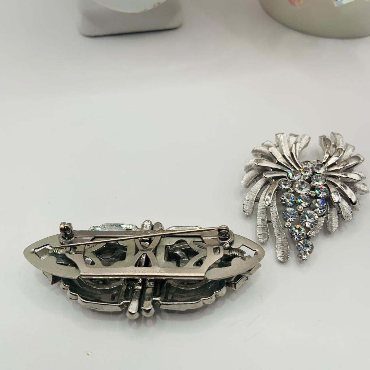 LOT18: Vintage Crown Trifari Silvertone Rodium Plated Clear Crystal Brooch, Rhinestone Duet Brooch/ Shoe Clip, Bead Necklaces and Earrings