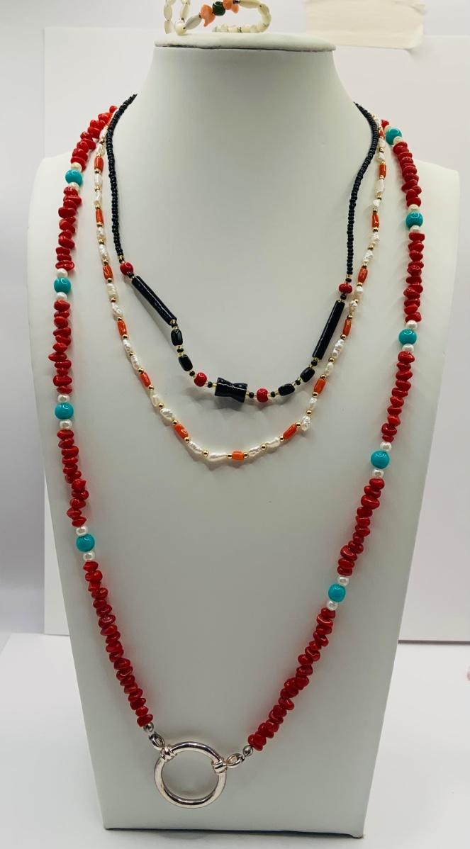 LOT 21: Colorful Collection of Beaded Necklaces, Branch Coral Necklaces, 925 Gold and Coral Pin and Fresh Water Pearl Necklaces and More