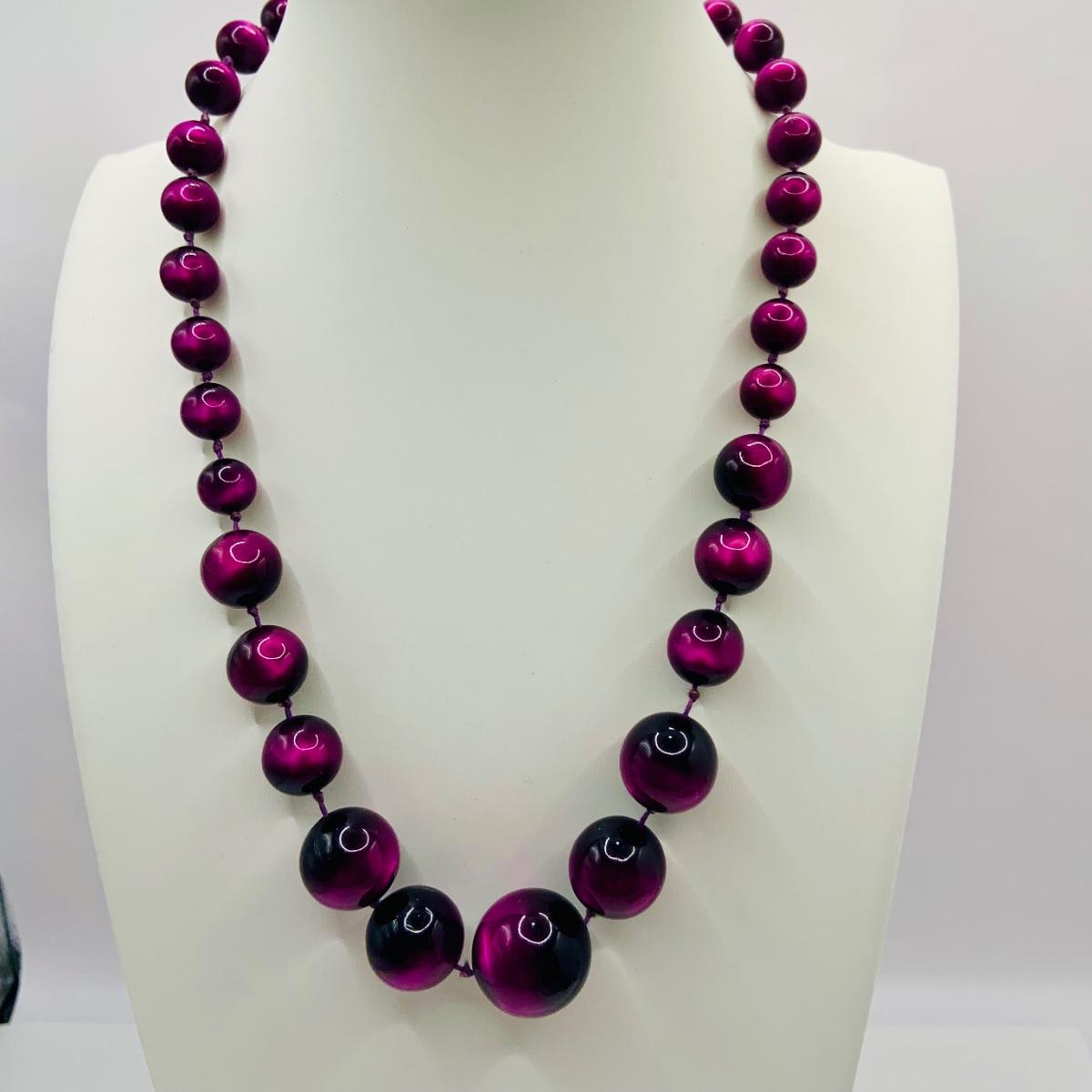 LOT 22: Collection of Deep Purple Beaded Necklaces, Purple Earrings, Pansy Pendant Necklace and More