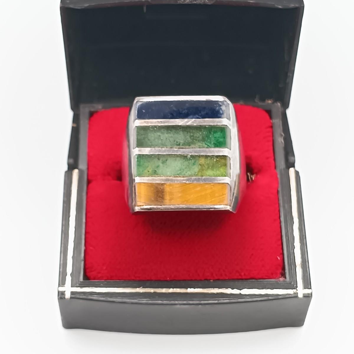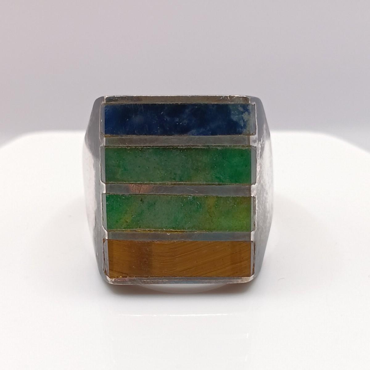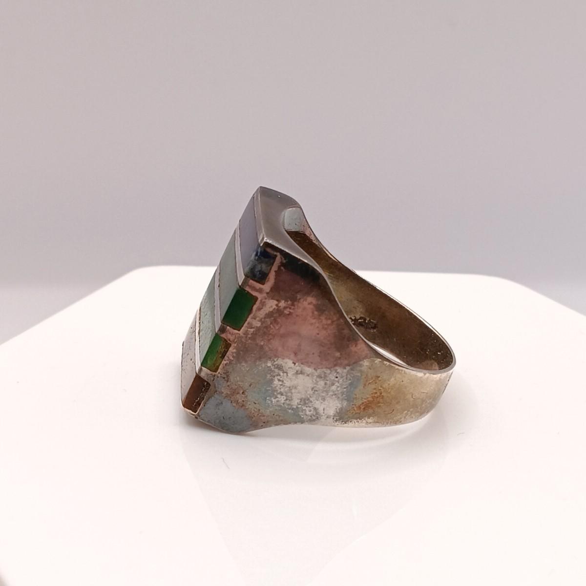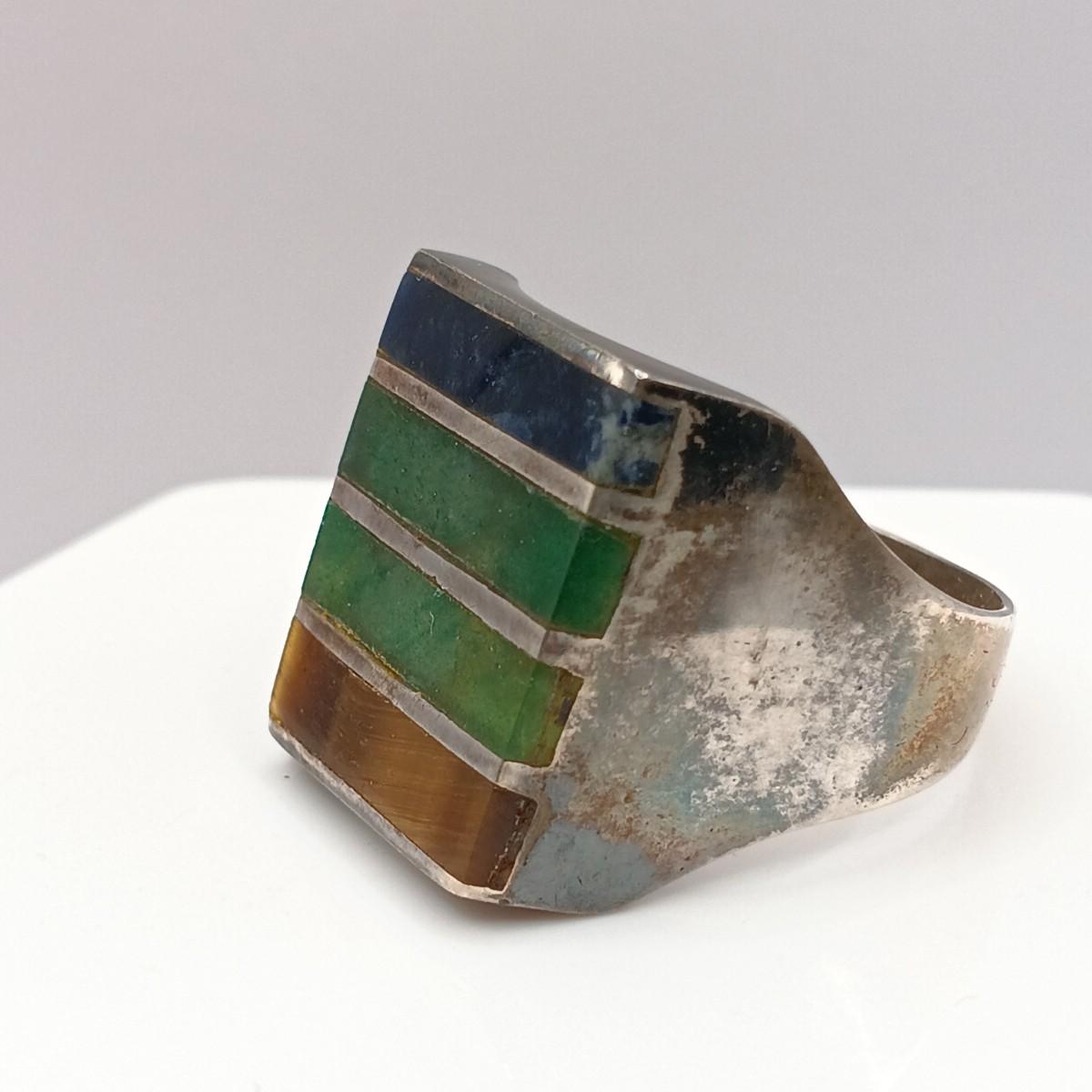 LOT 31: Vintage Men's 925 Sterling Silver Ring with Stone Inlay 11.8gtw Sz 10