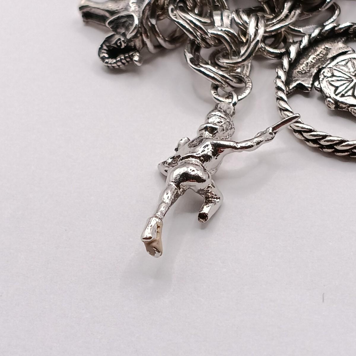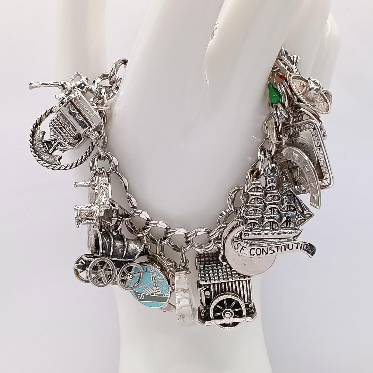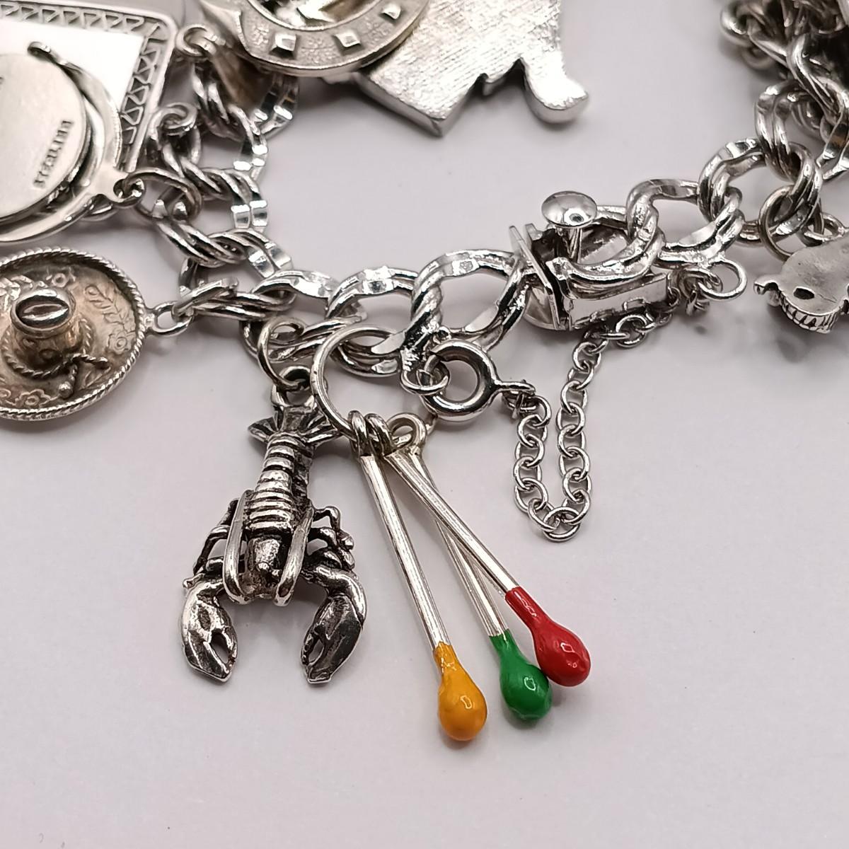 LOT 34: Vintage Sterling Silver Charm Bracelet Featuring 22 Charms and a Safety Chain 67.9gtw