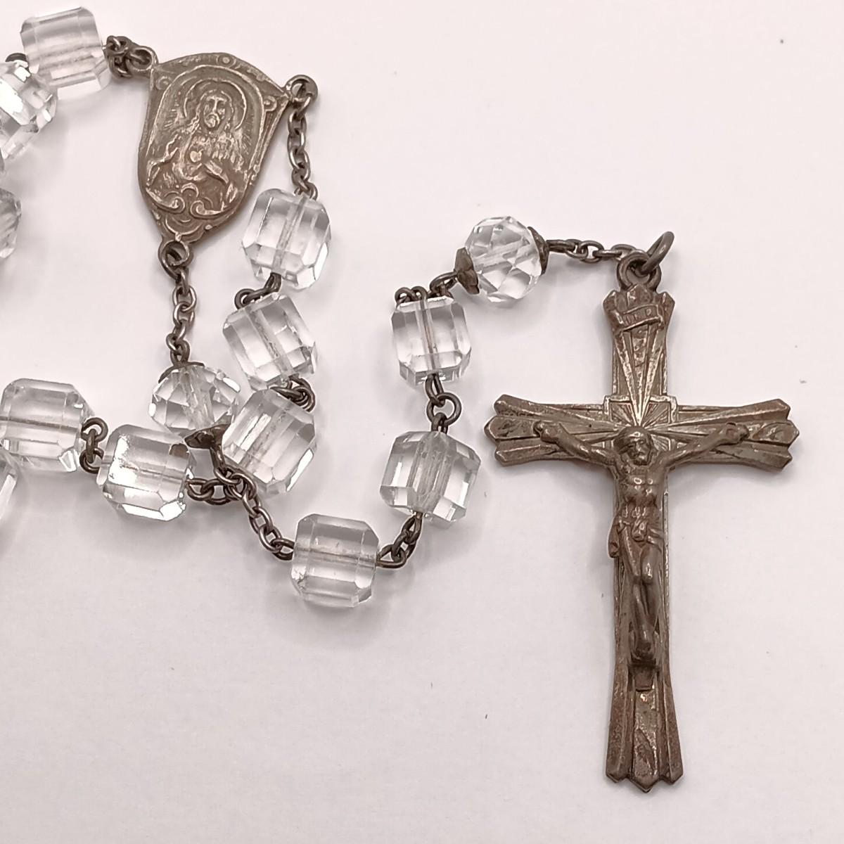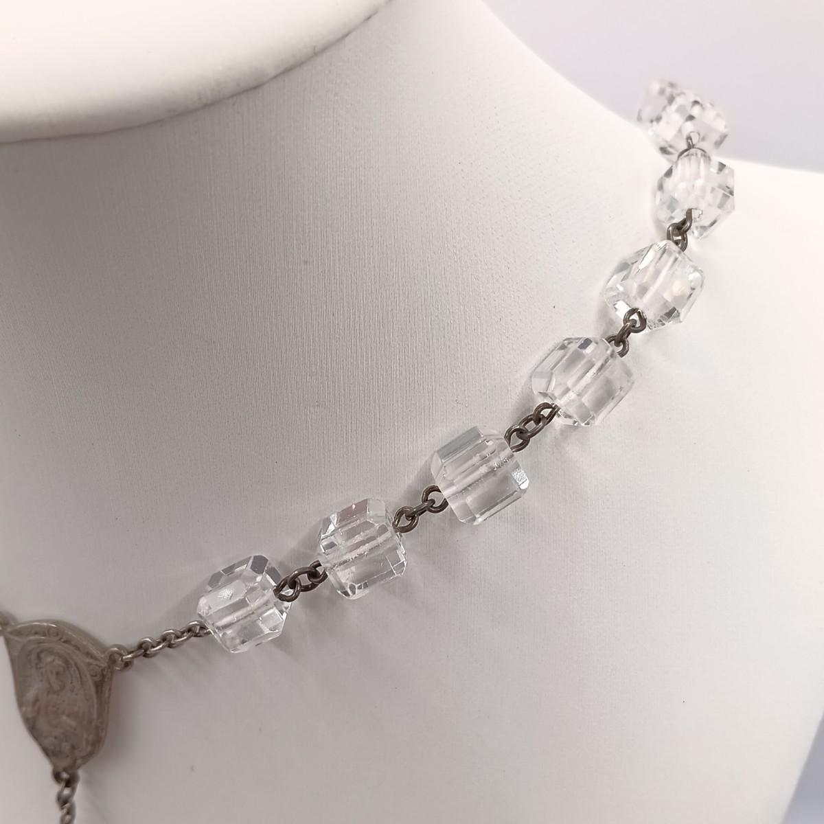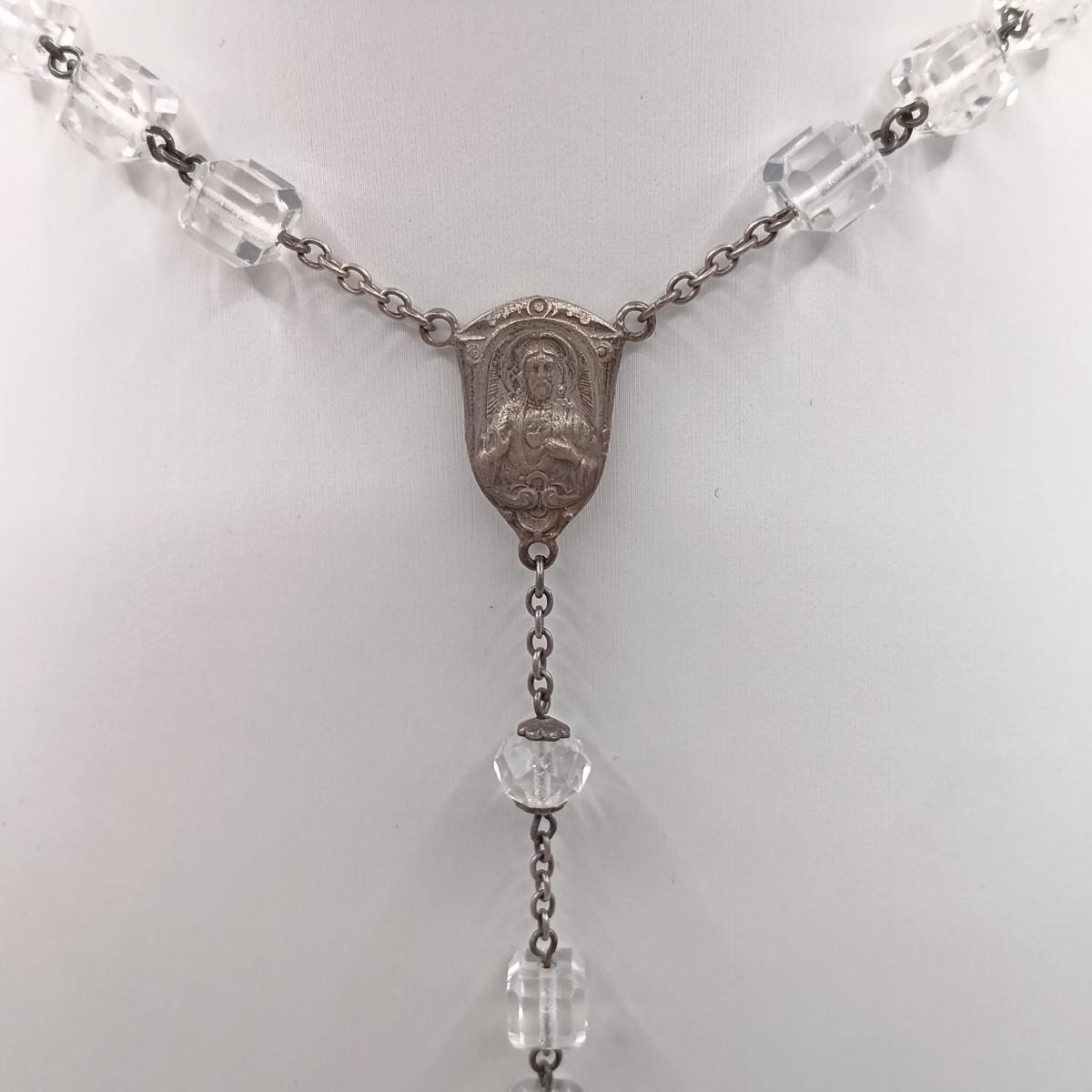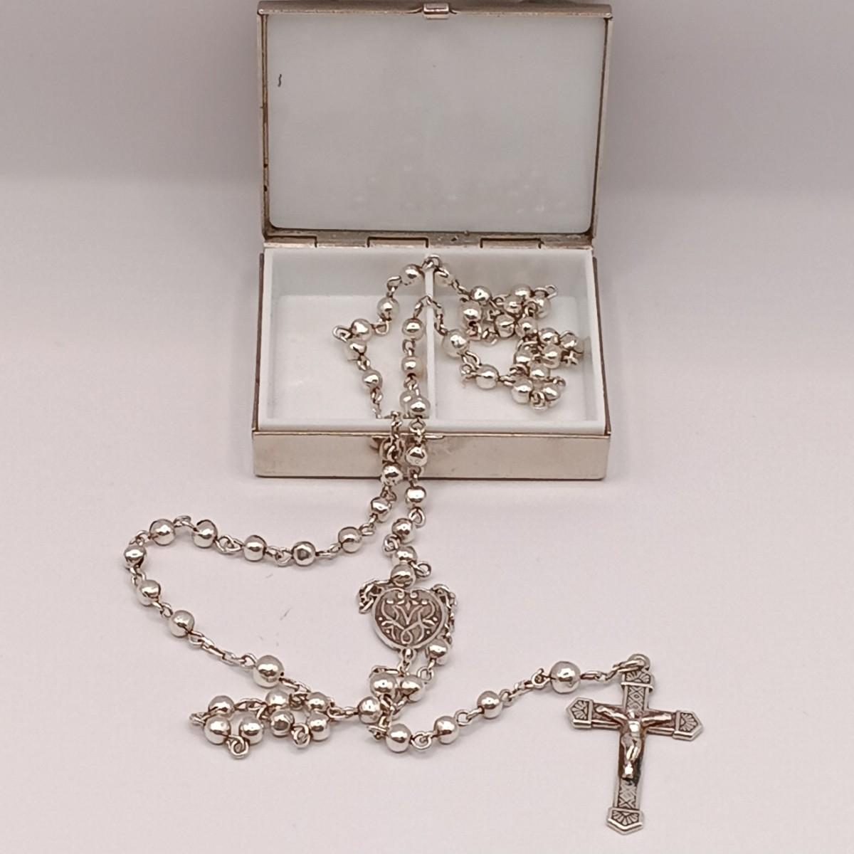 LOT 39: Vintage Rhinestone/Crystal Rosary w/ 800 Silver Rosary in Silver-Tone Pillbox