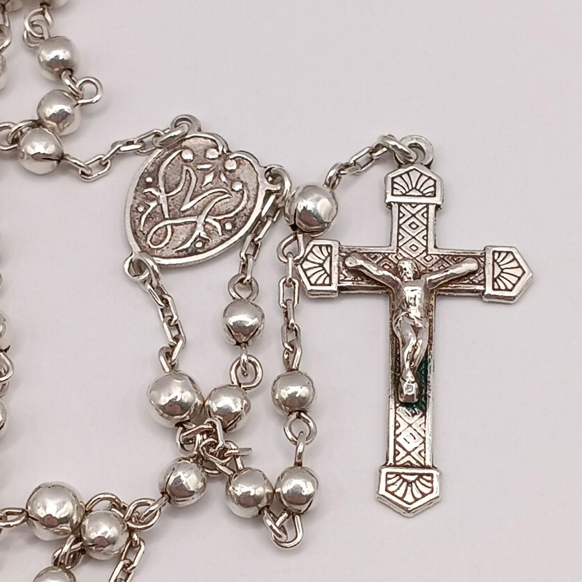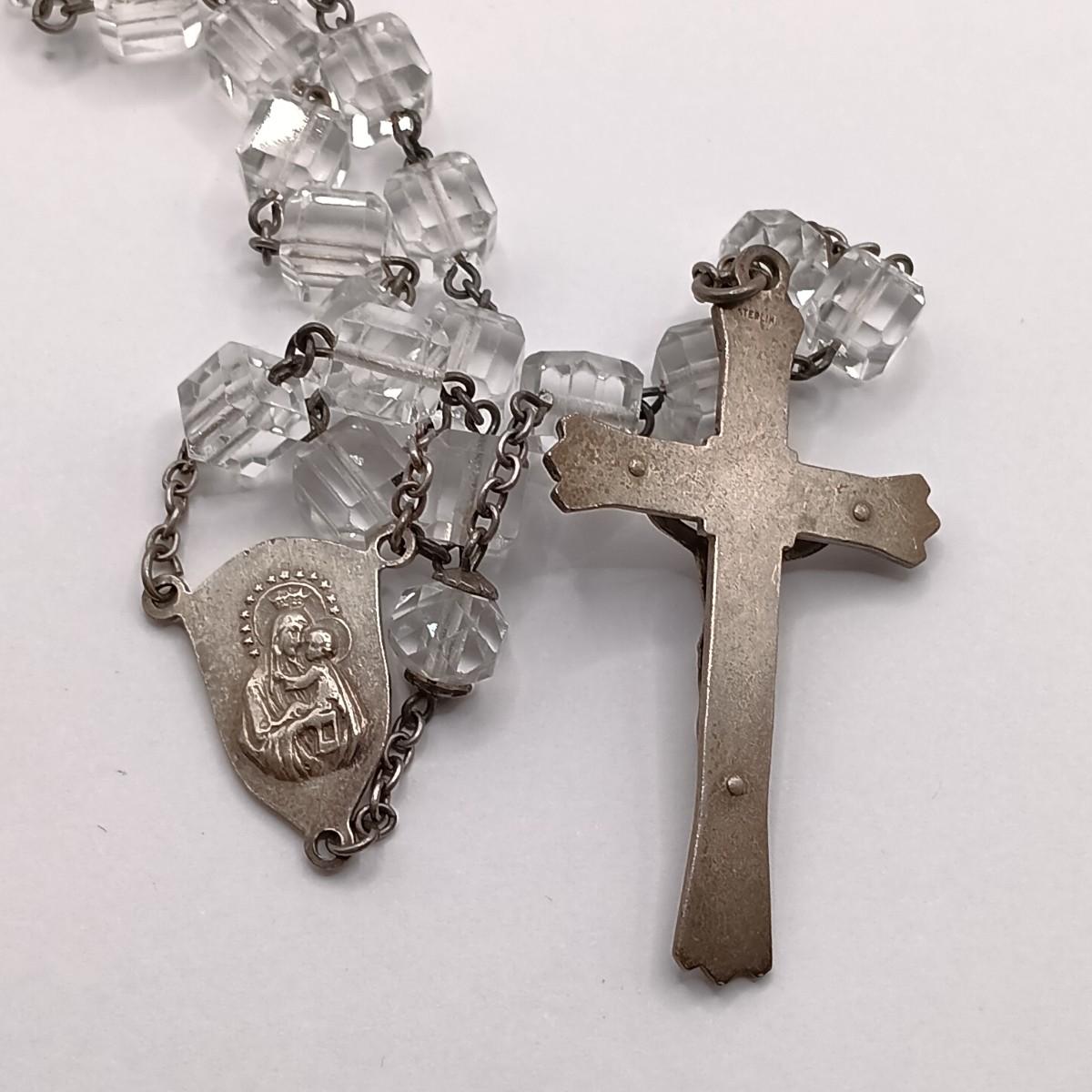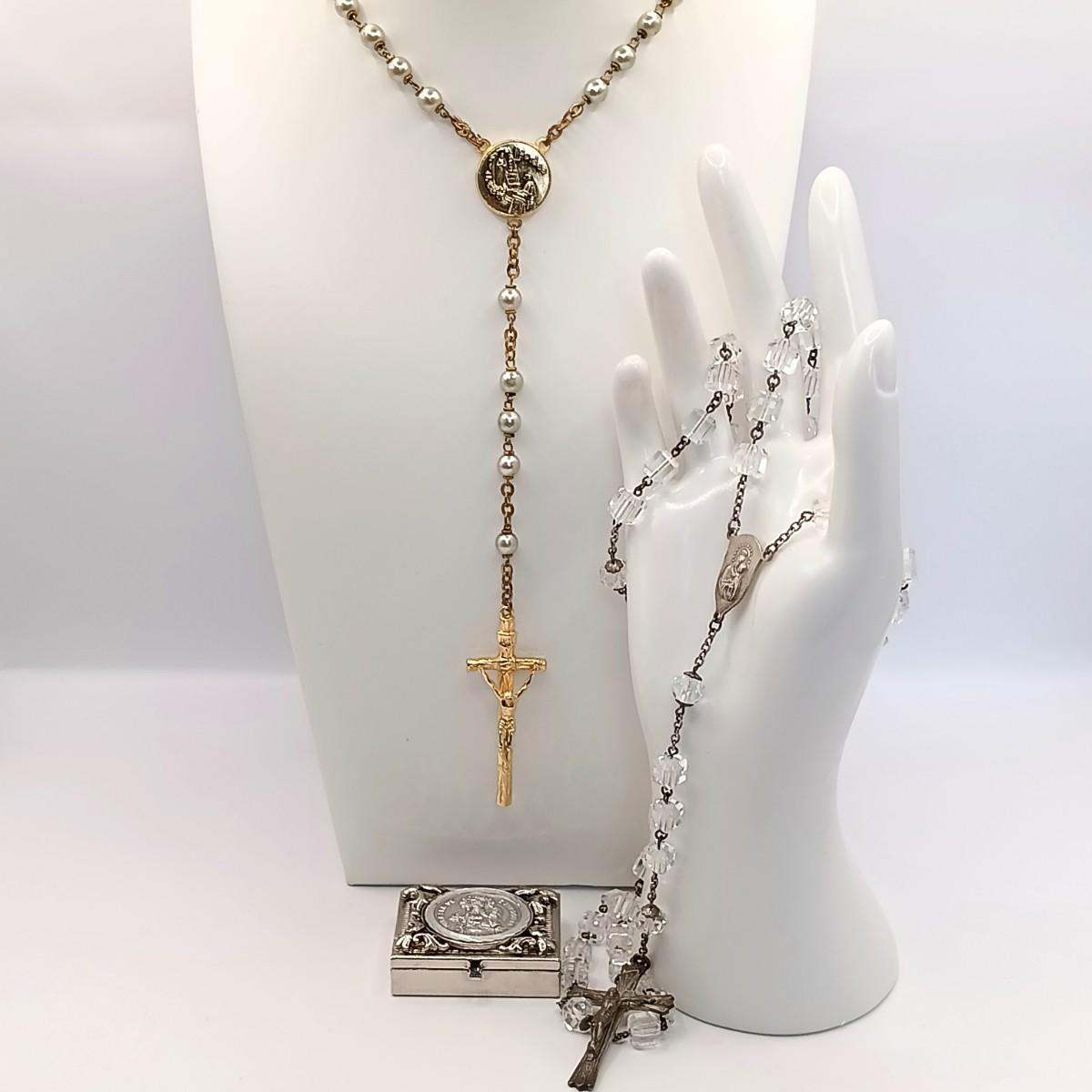 LOT 39: Vintage Rhinestone/Crystal Rosary w/ 800 Silver Rosary in Silver-Tone Pillbox