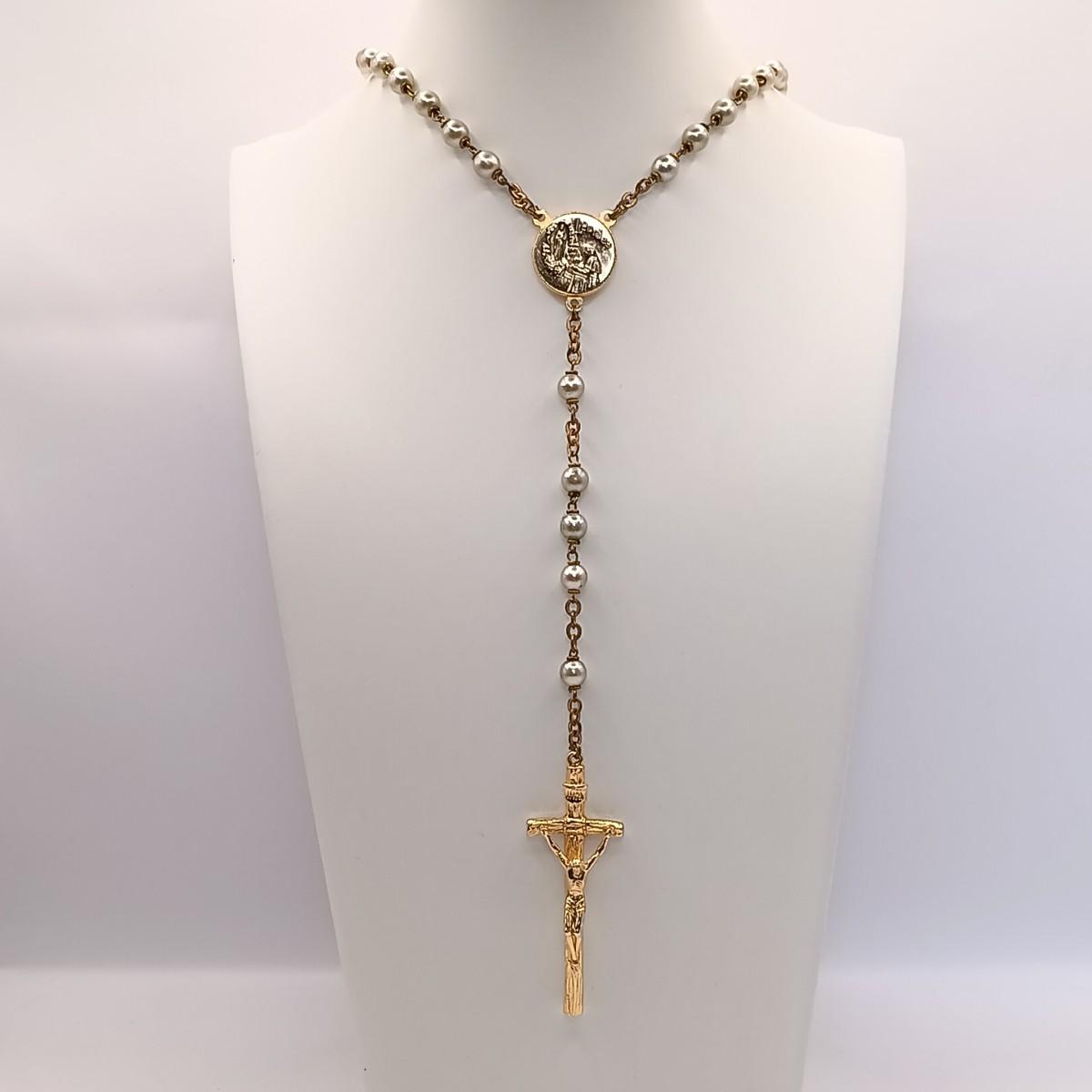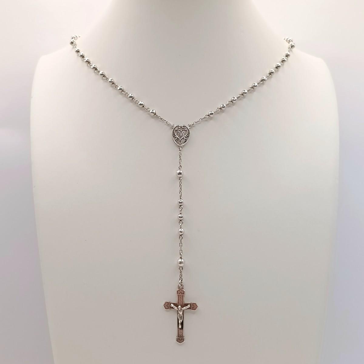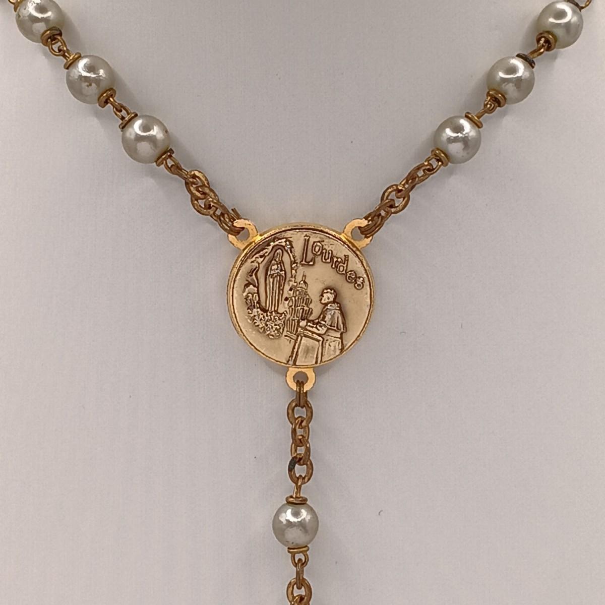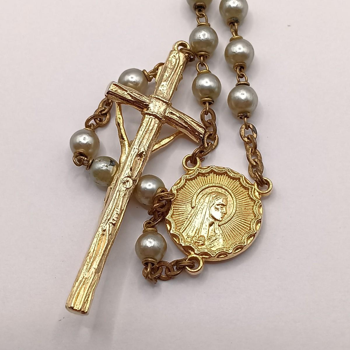 LOT 39: Vintage Rhinestone/Crystal Rosary w/ 800 Silver Rosary in Silver-Tone Pillbox