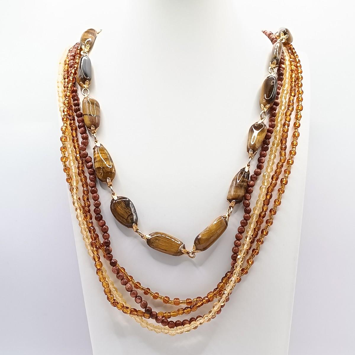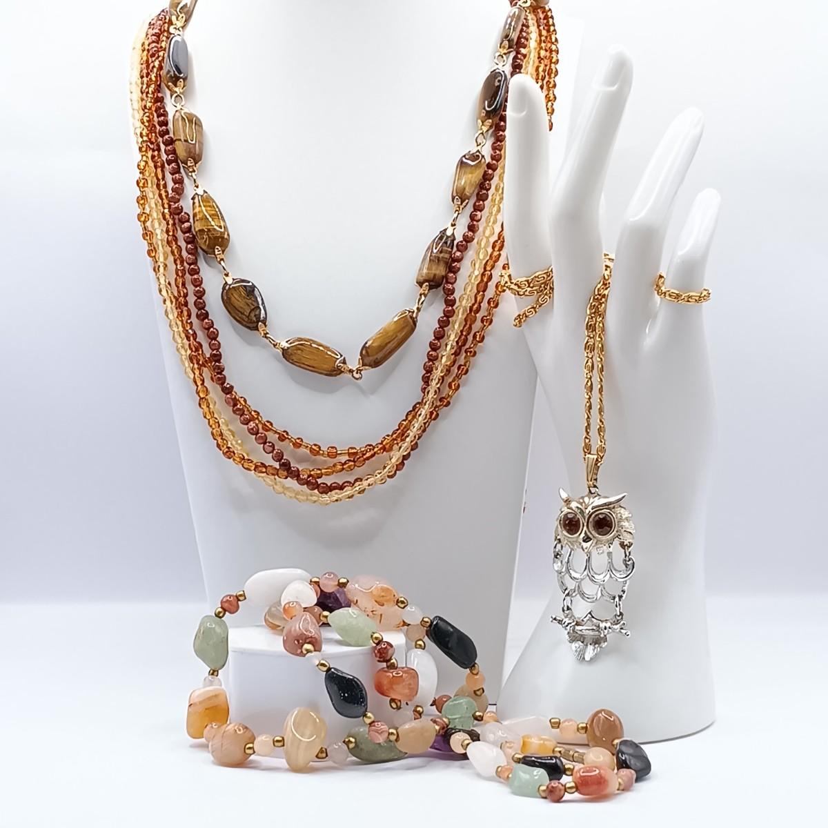 LOT 42: Vintage Articulated Owl Pendant on Gold-Tone Necklace, Tigers Eye Stone Necklace, Multi-Gemstone Nugget Necklace & More