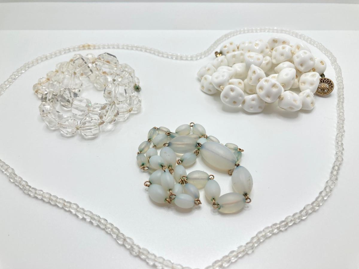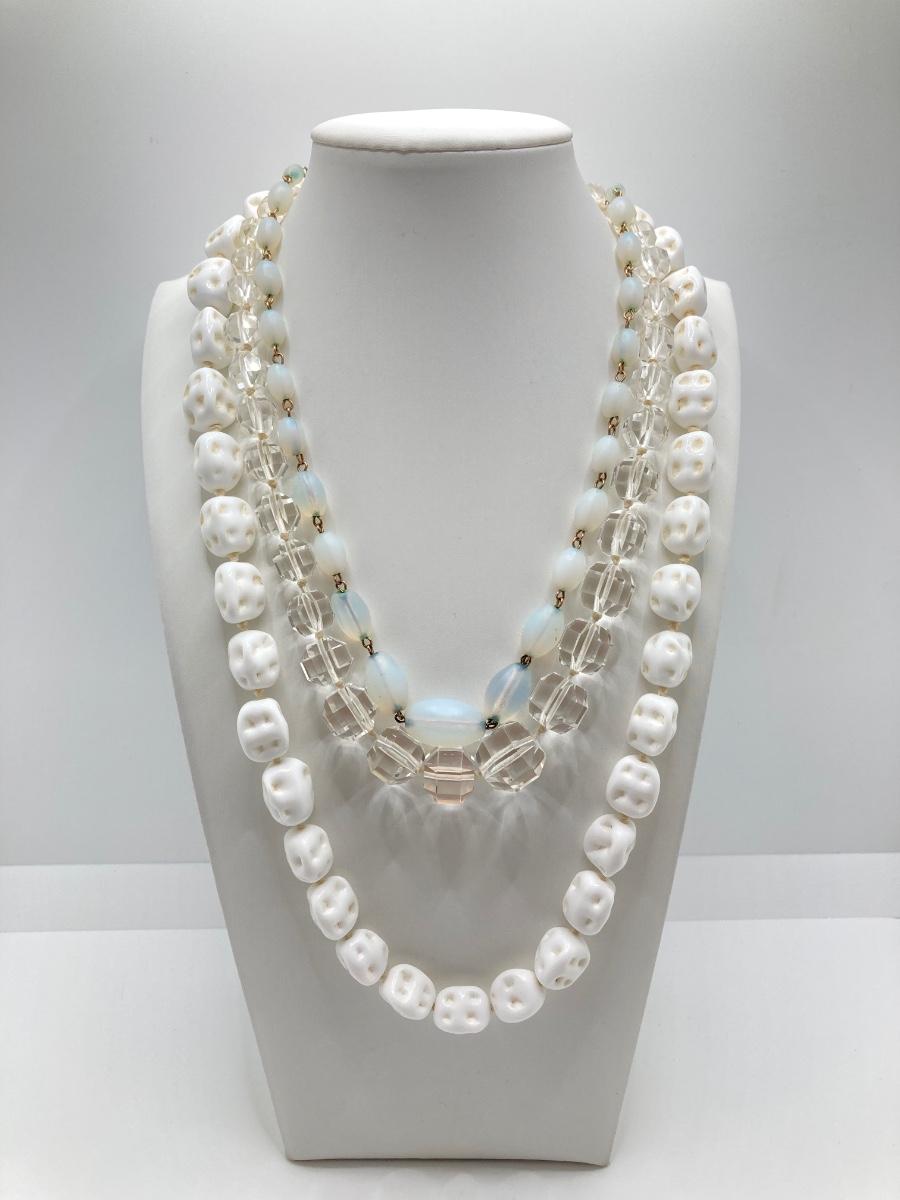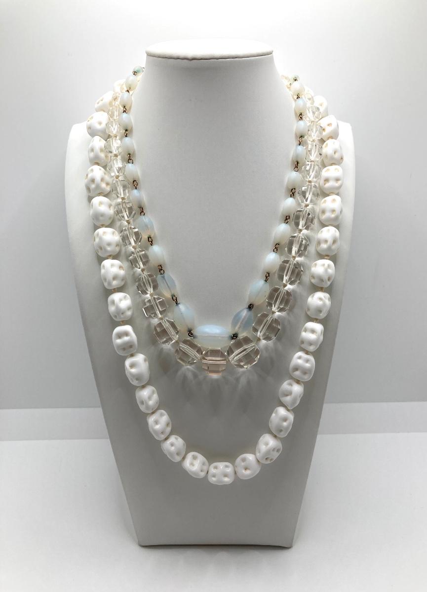 LOT 73J: Vintage Glass Beaded Necklaces - Pressed / Molded, Milk, Frosted and More