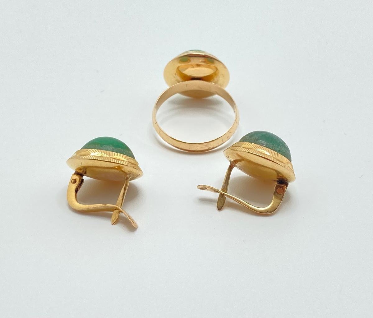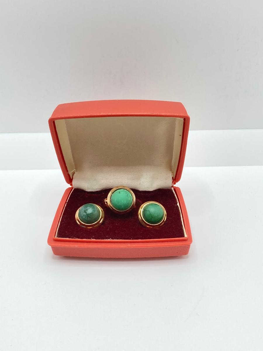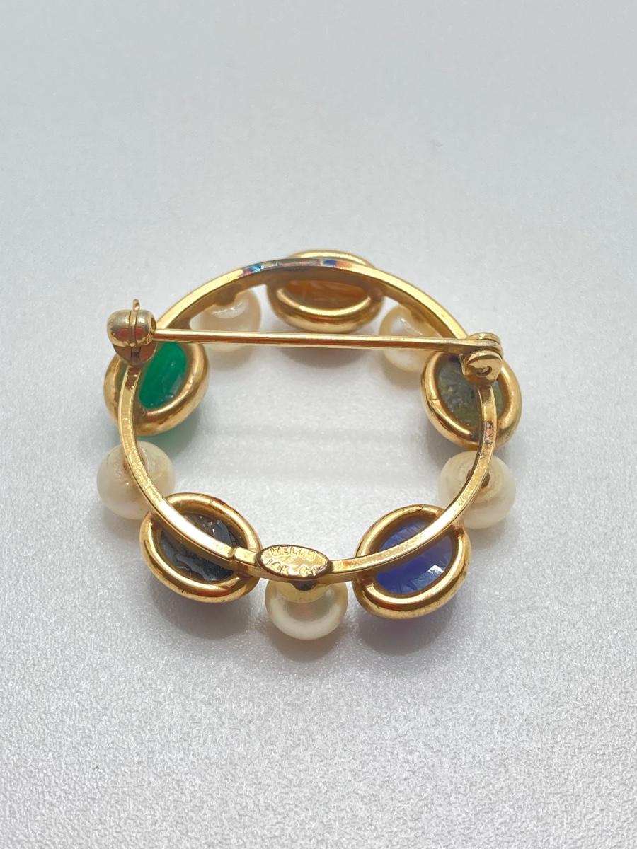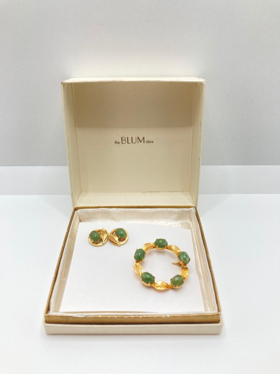 LOT 74J: Vintage Jewelry Collection - Wells 14K G.F. Scarab Stone Brooch, Earrings and Ring