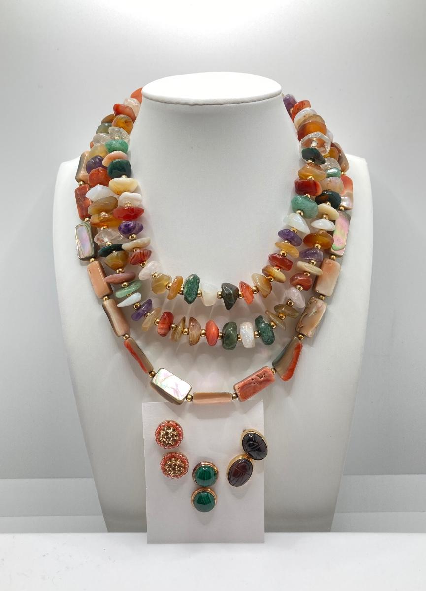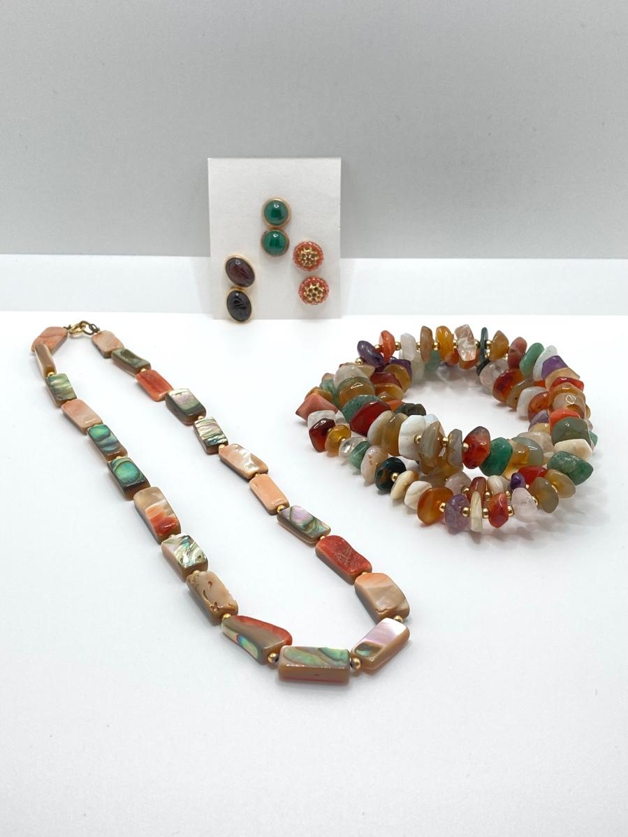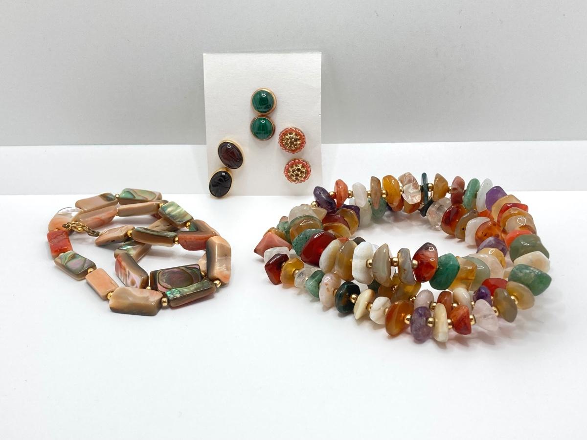 LOT 76J: Vintage Polished Stone Jewelry - Necklaces and Earrings